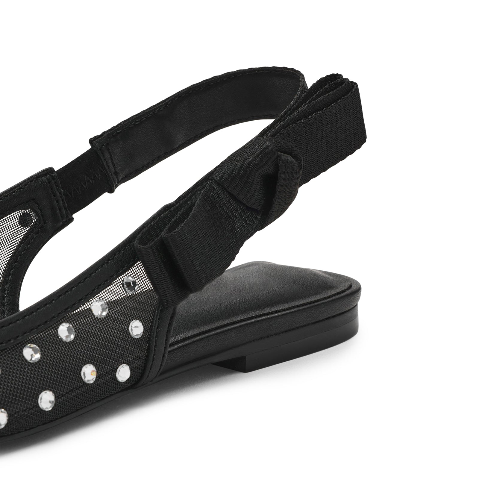 Black Mesh Pointed-Toe Rhinestones And Slingback With Bow Flats
