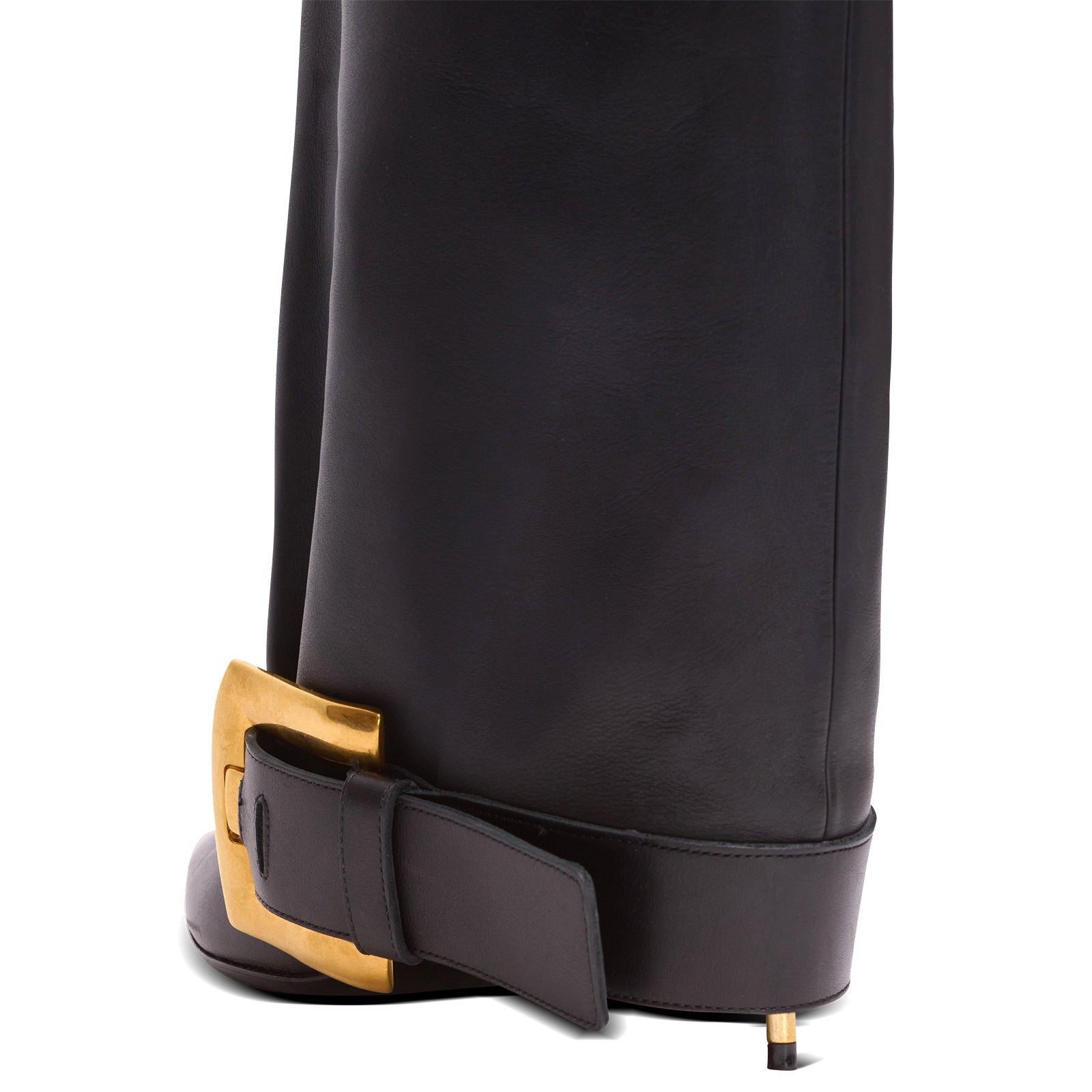 - Bottom buckle strap detail enhances the edgy silhouette.