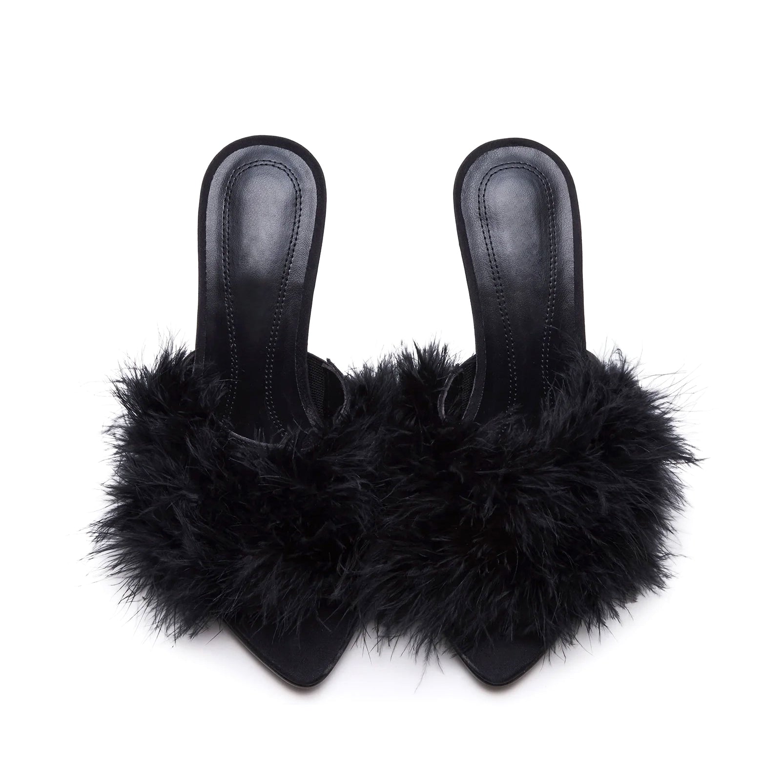 Chic and modern, these heels blend cozy plush texture with sleek sophistication, making every step a statement of effortless style.