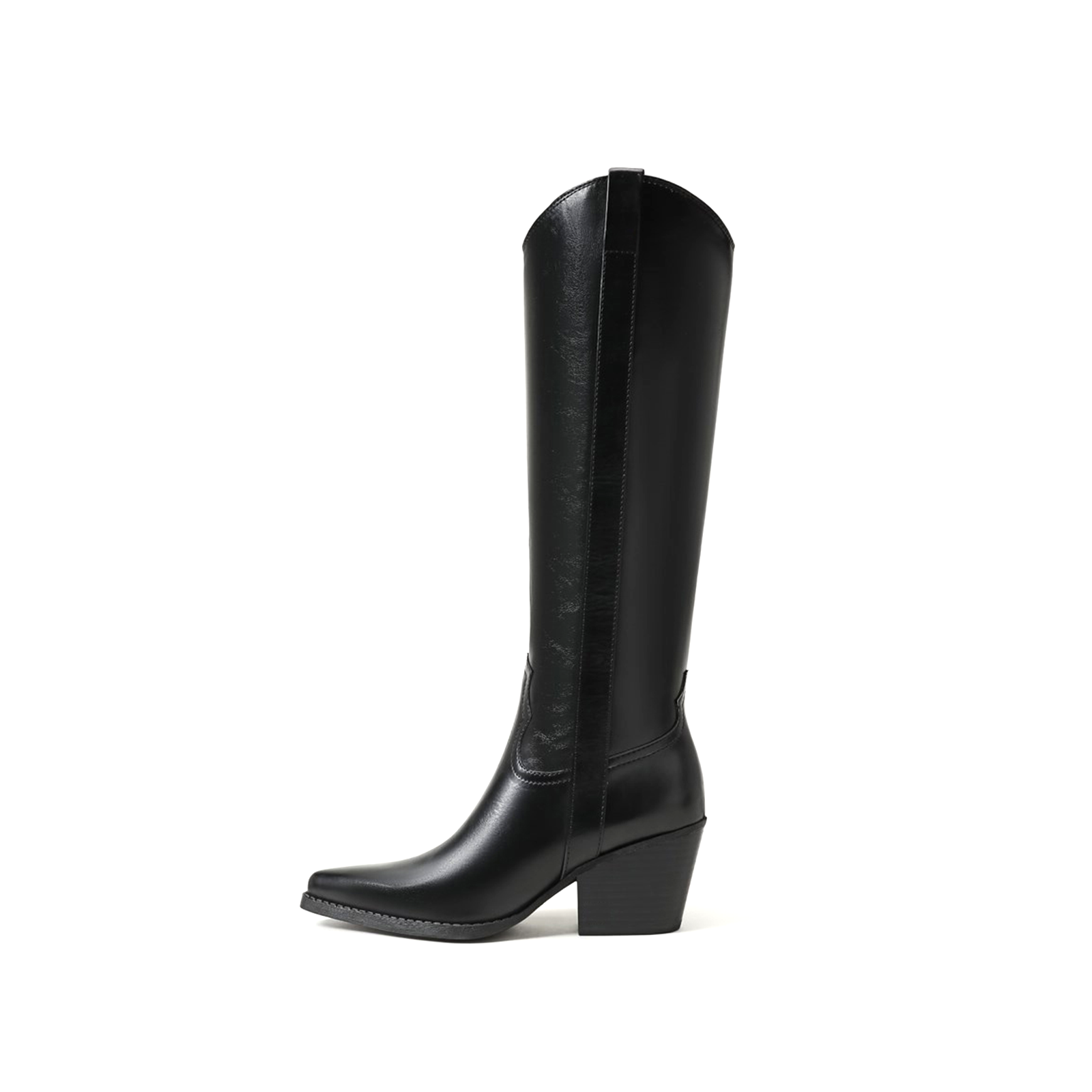 Black Pointed-Toe Half-Zip Knee High Cowgirl Boots