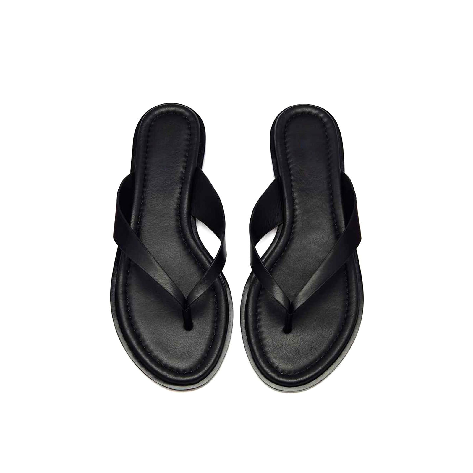 Black Round-Toe Flip-Flop Slip-On Sandals Flats.
