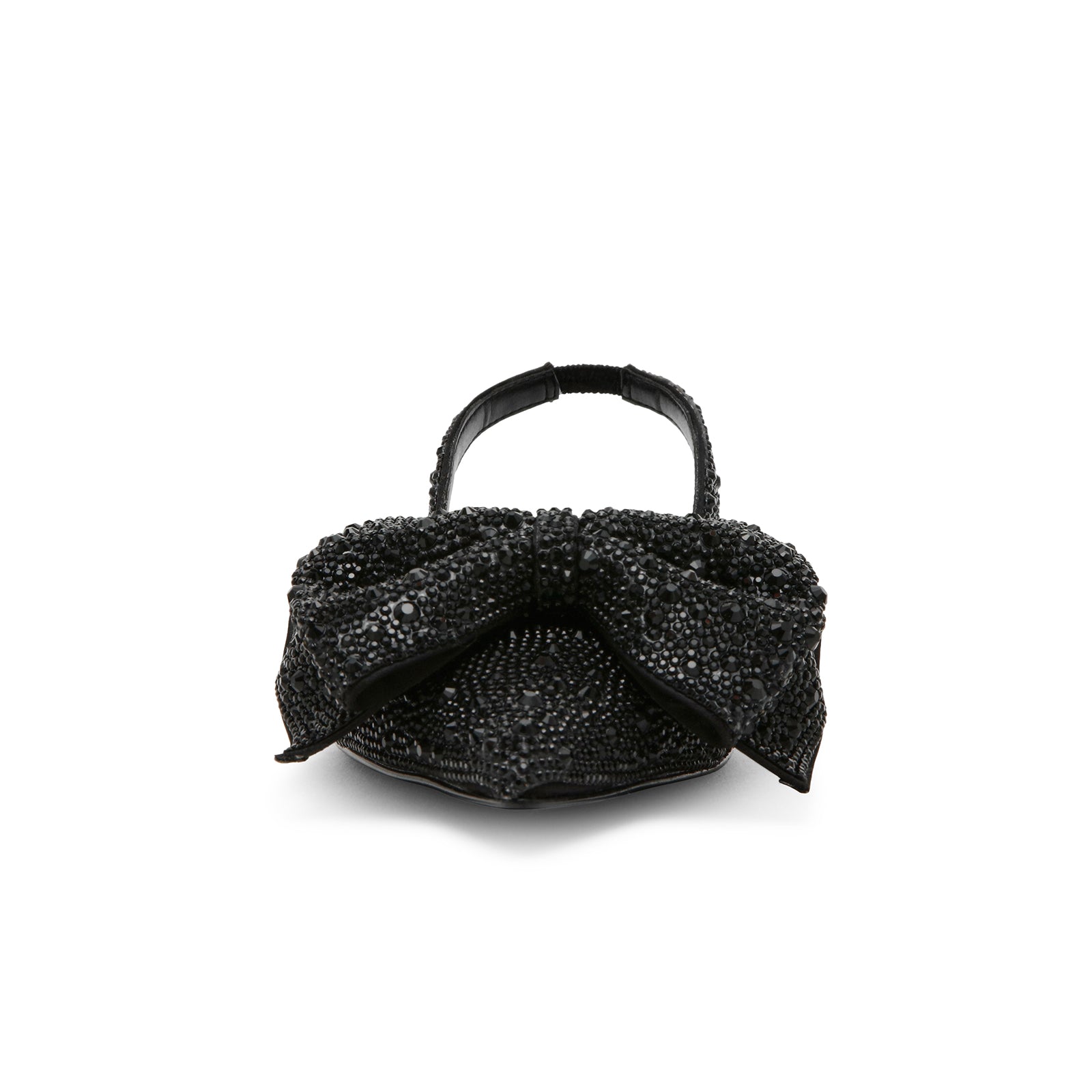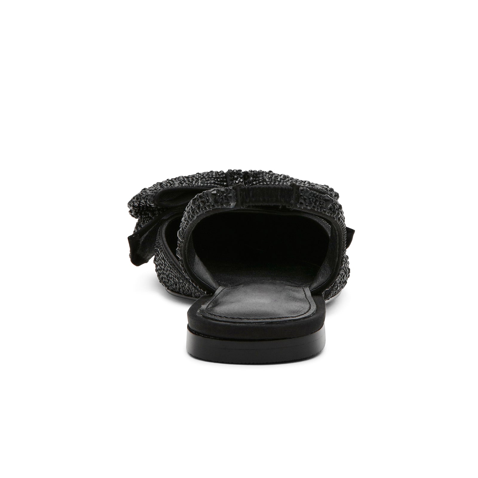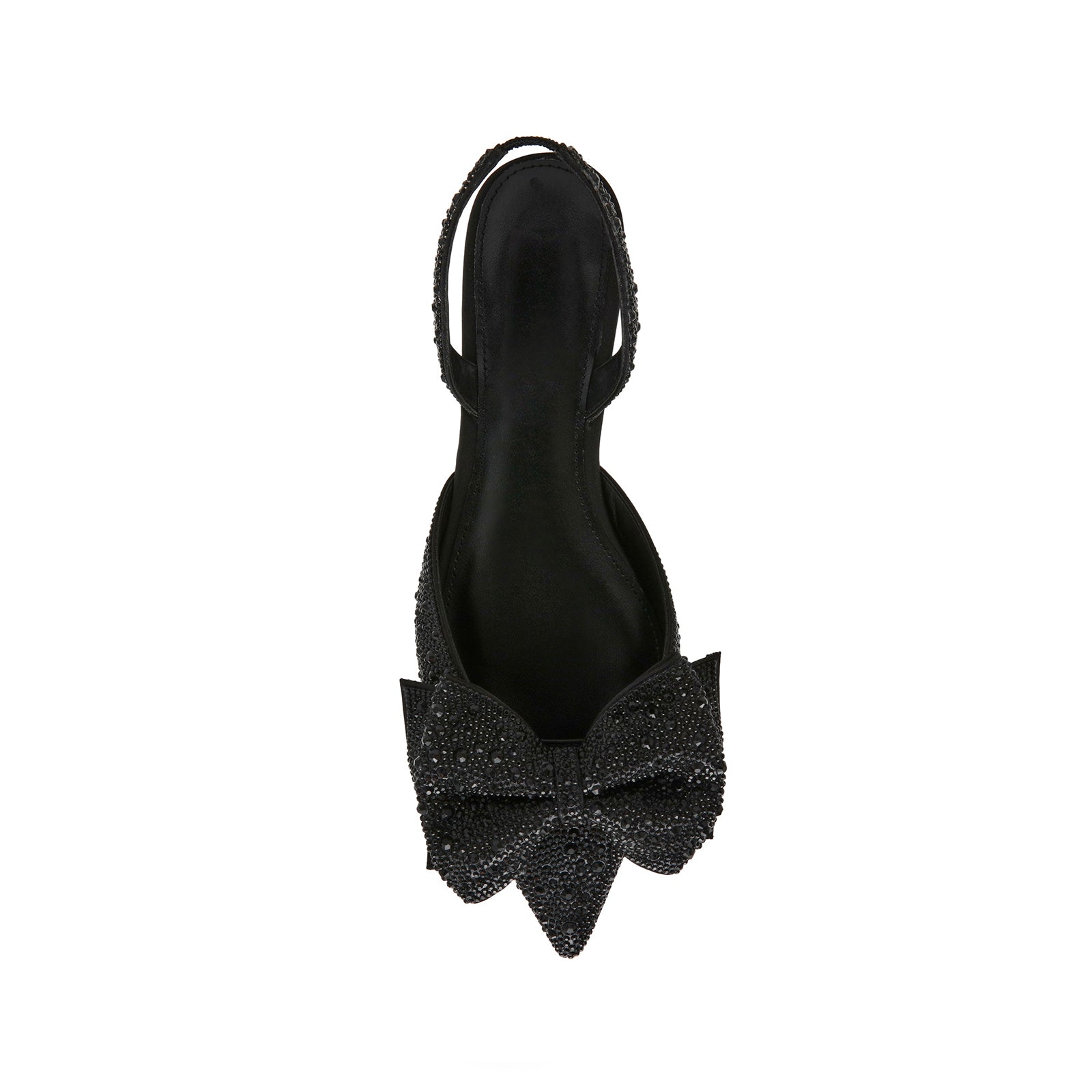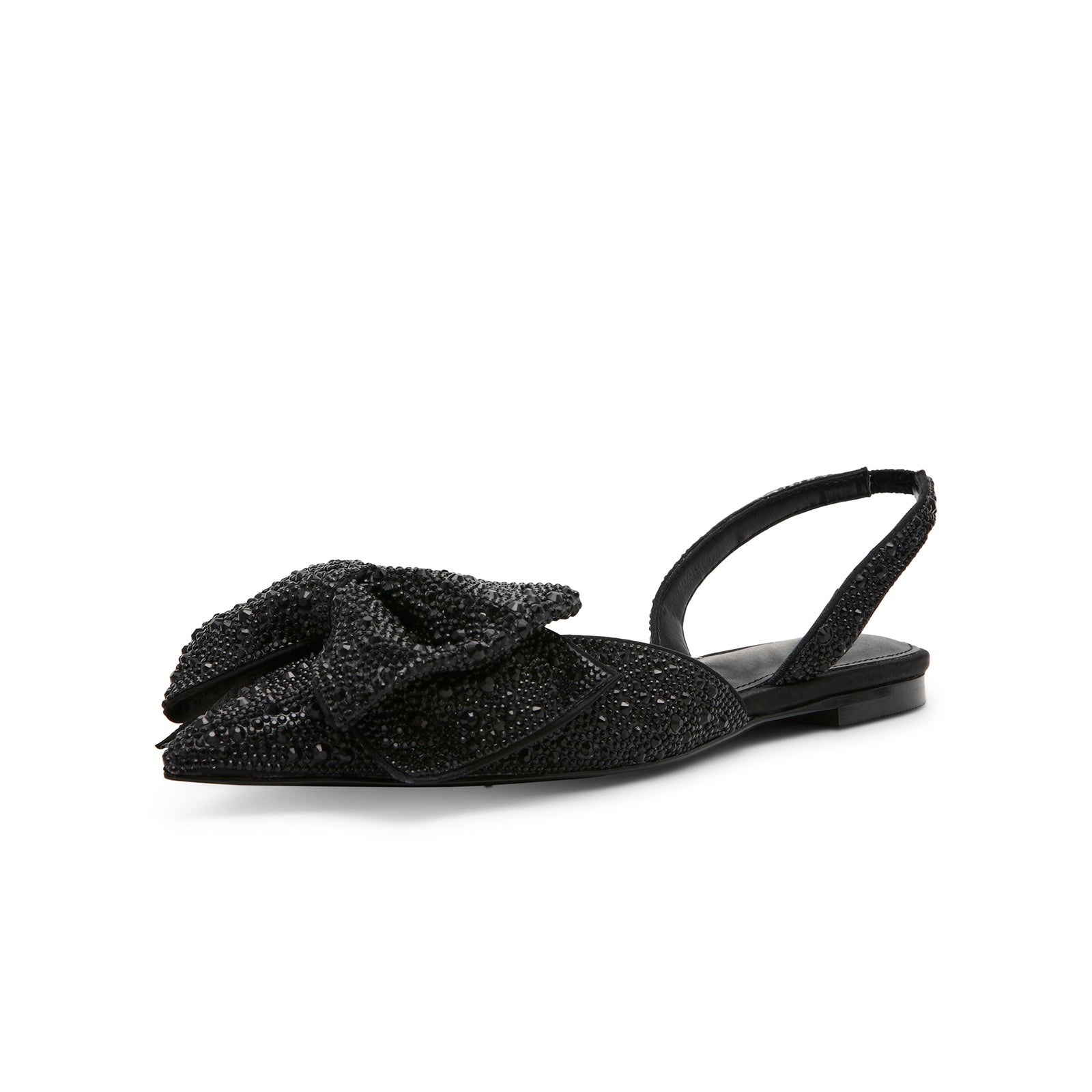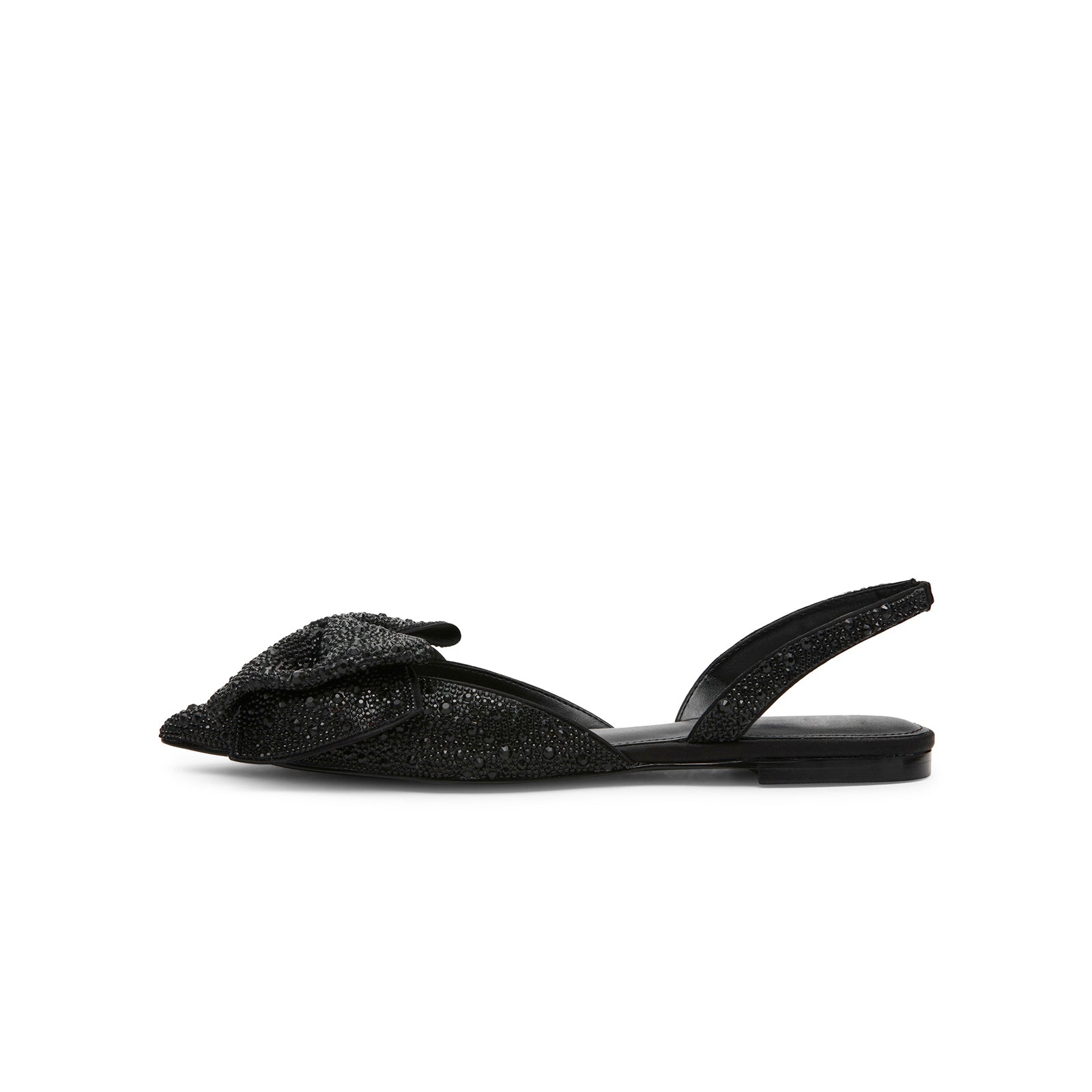 Black Satin Pointed-Toe Drops Front Bow Slingback Flats.