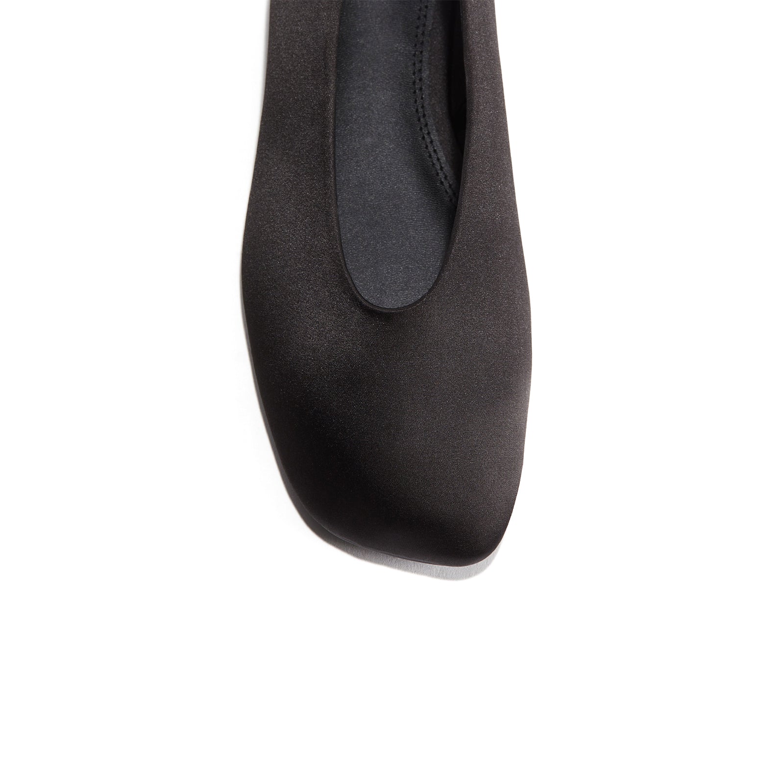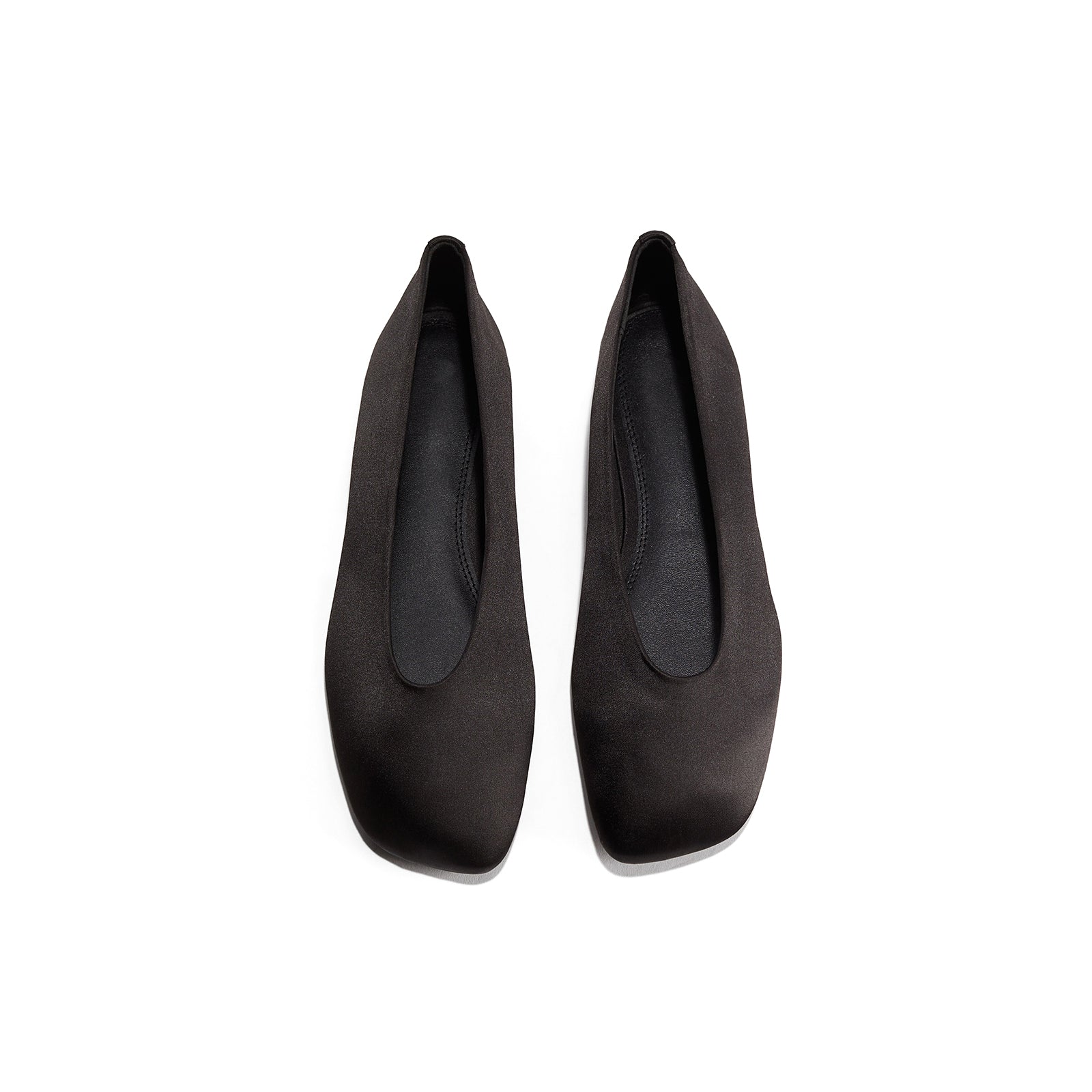 Black Satin Square-Toe Classic Slip-On Ballet Flats.