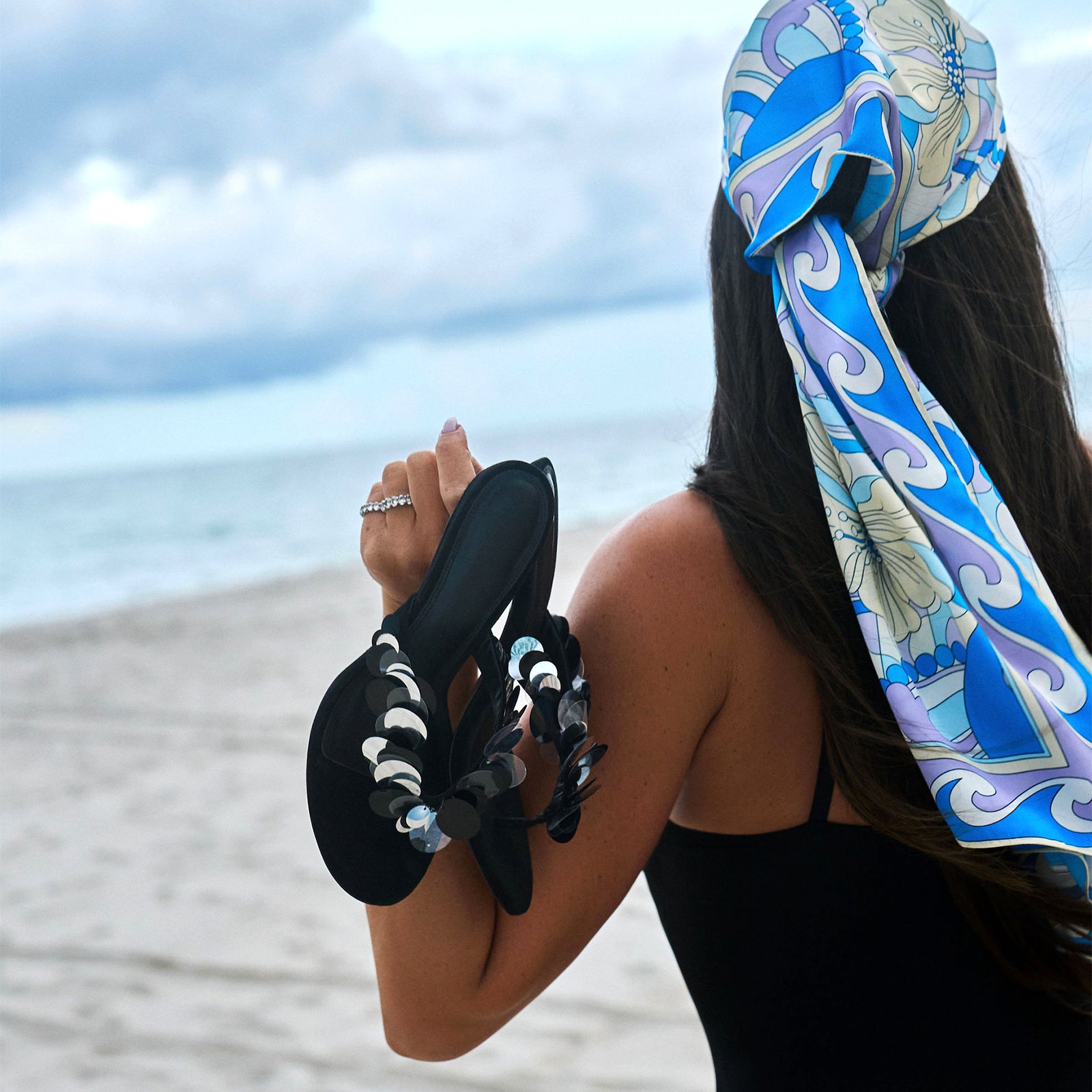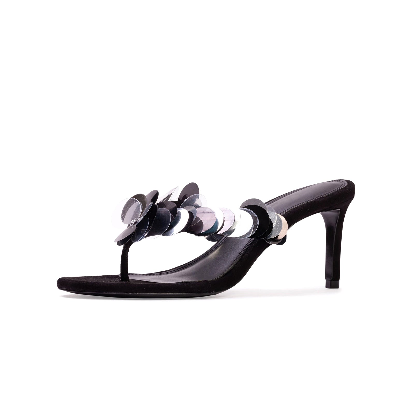 A perfect blend of classic style and modern flair — these sequin faux suede backless heels with a round toe and high stiletto heel elevate every step with bold sophistication.