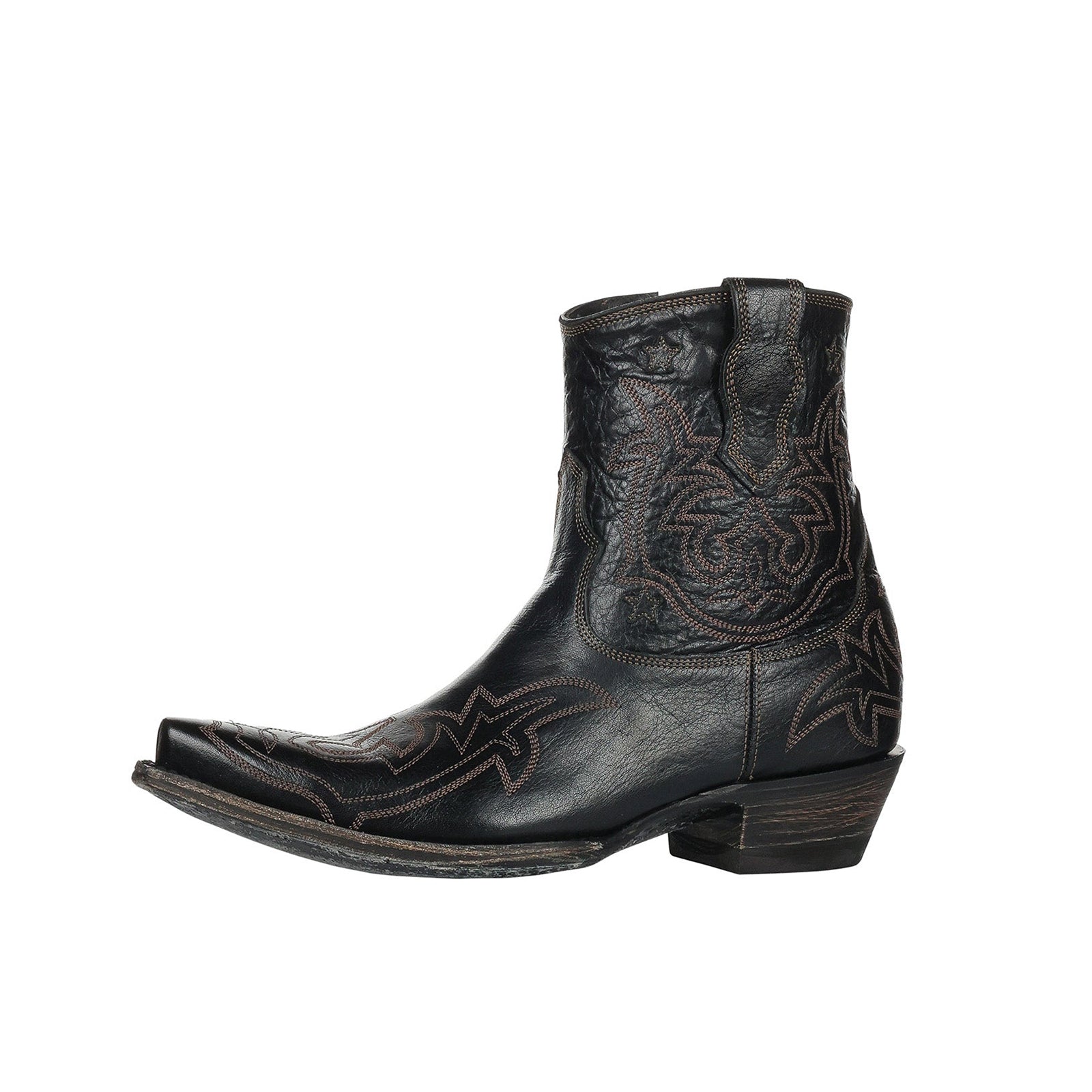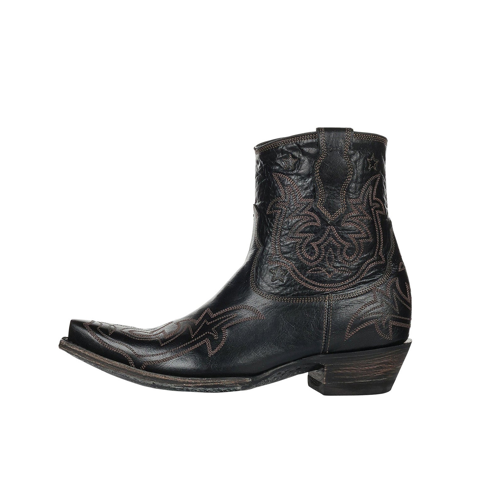 A polished Western ankle boot that blends timeless black with delicate embroidered detail.