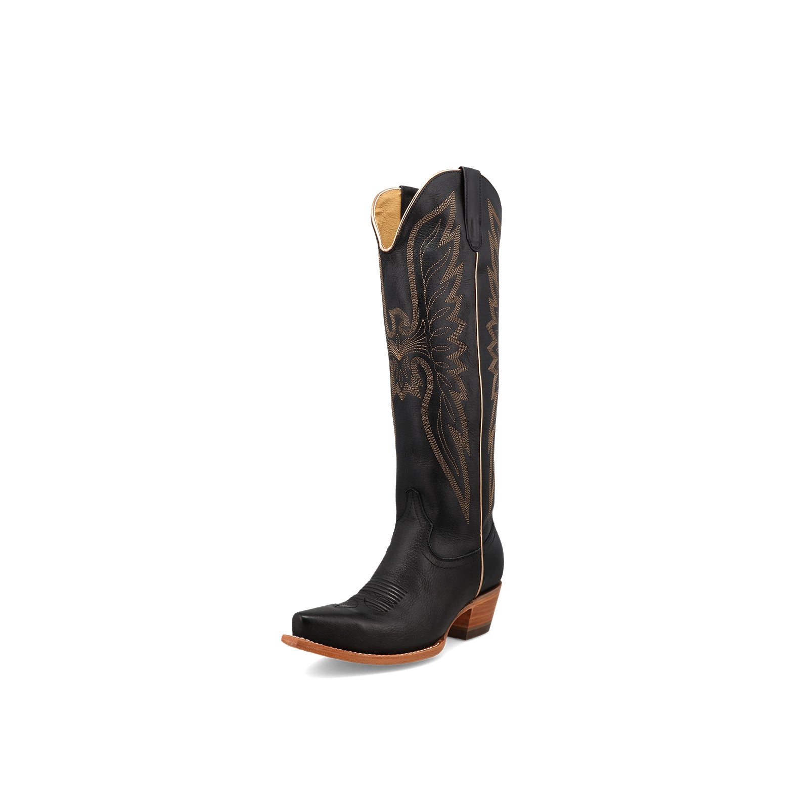 Black Snip-Toe Copper Embroidery Half-Zip Knee High Cowgirl Boots.
