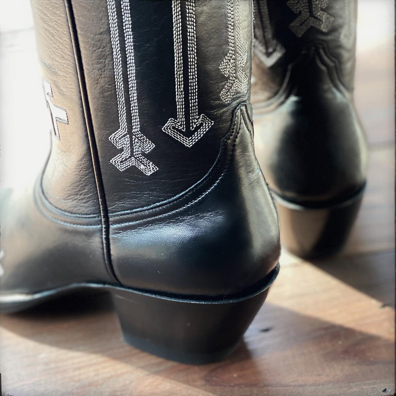 Black Snip-Toe Embroidery "X" Inlay Ankle Cowgirl Boots