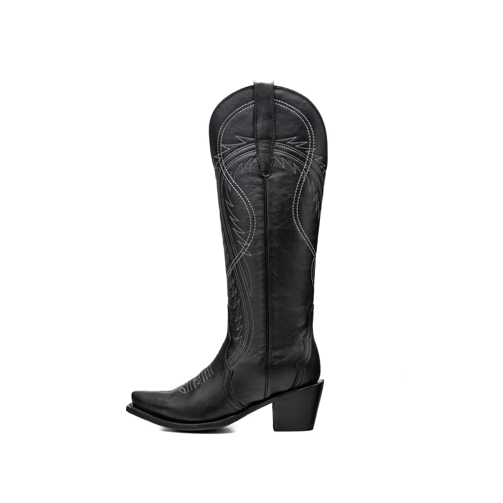 Black Snip-Toe Half-Zip Double Embroidery Knee High Cowgirl Boots