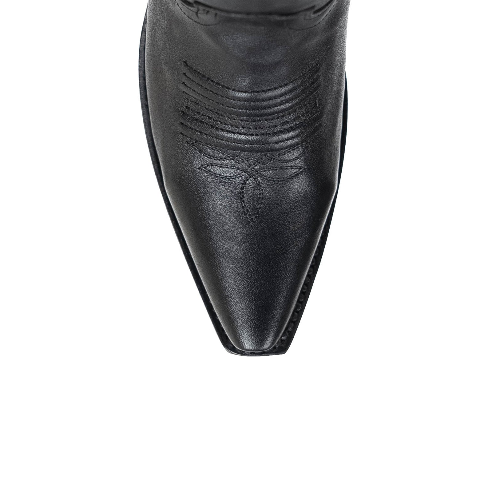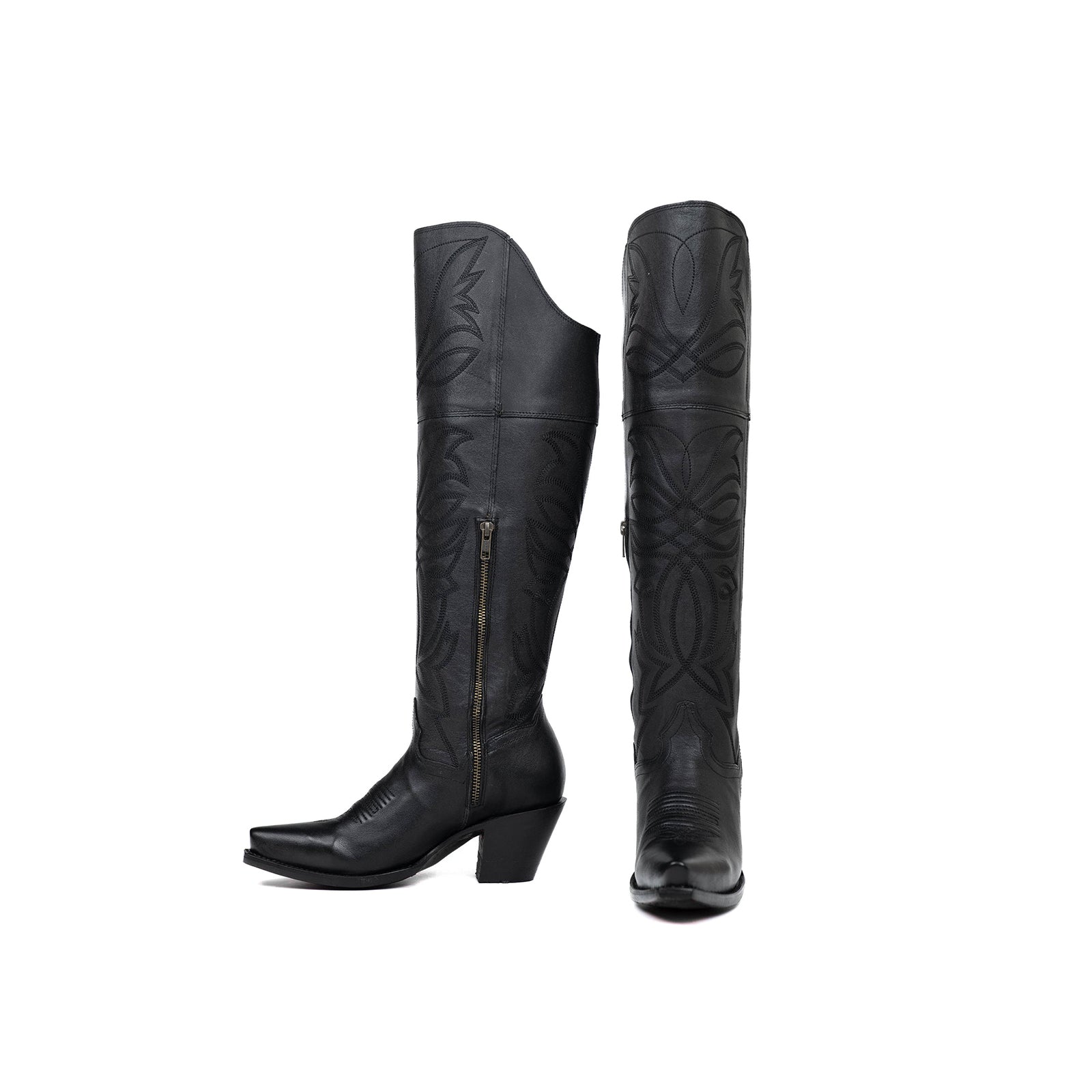 Black Snip-Toe Half-Zip Western Embroidery Knee High Cowgirl Boots.