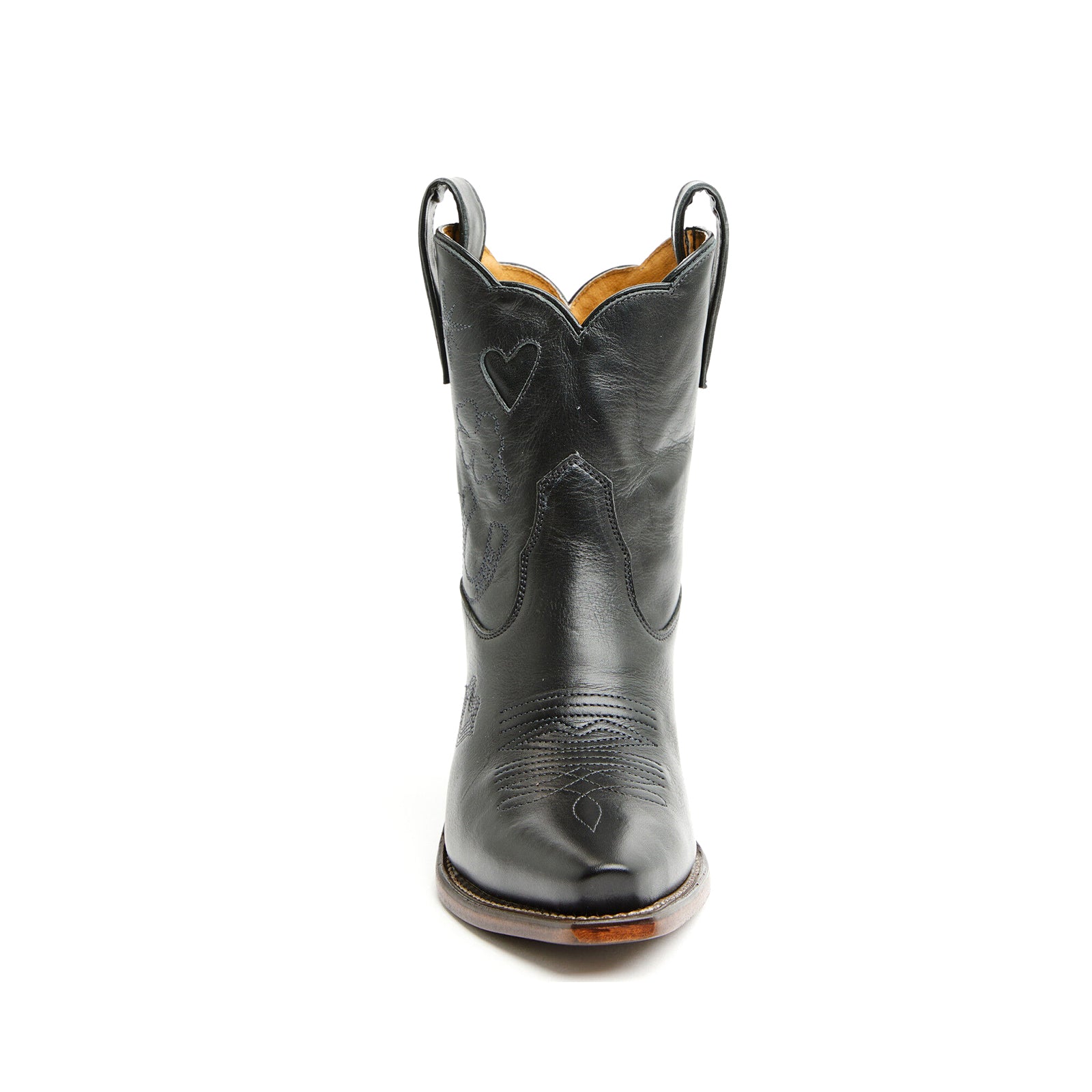 Black Snip-Toe Heart Inlay Horseshoe Embroidery Ankle Cowgirl Boots