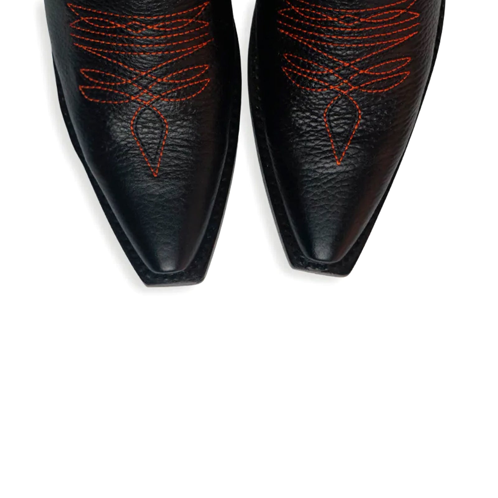 Black Snip-Toe Orange Embroidery Mid Calf Cowgirl Boots.