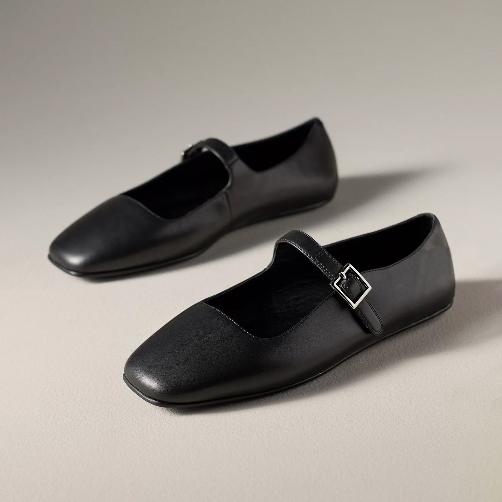 Black Square-Toe Bridge Strap Mary Janes Flats.