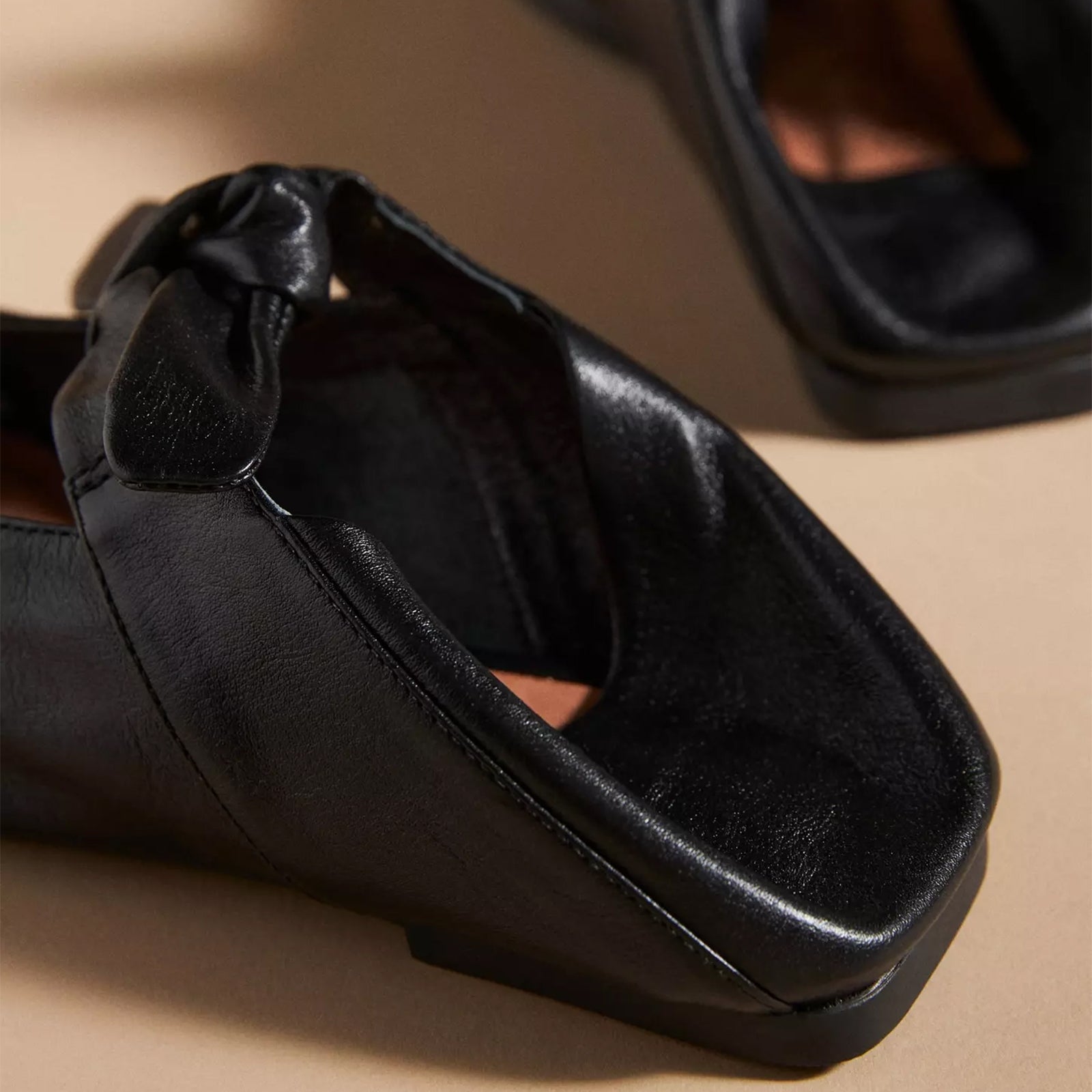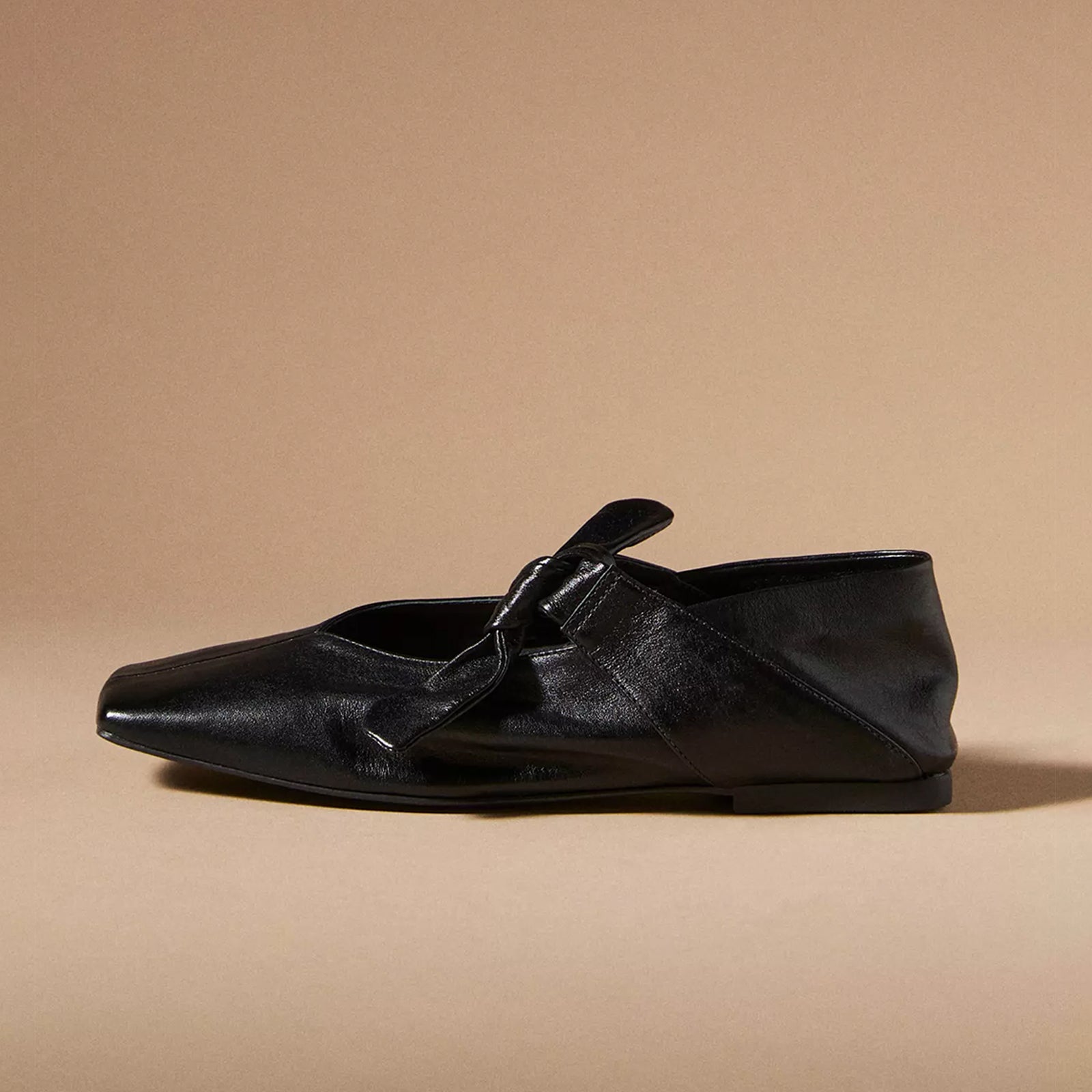 Black Square-Toe Center Lace-Up Ballet Flats.