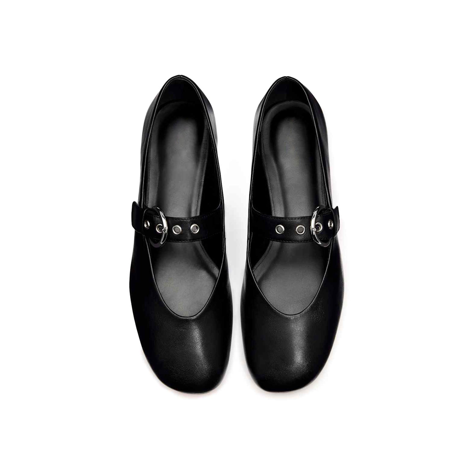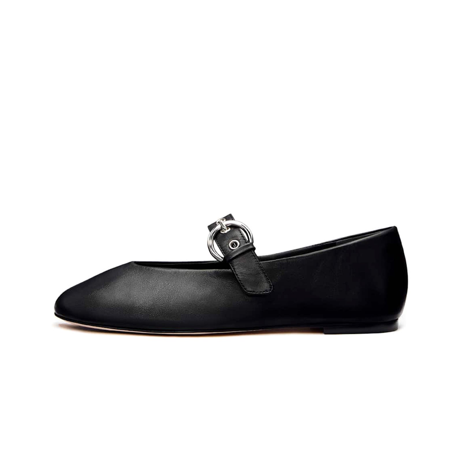 Black Square-Toe Classic Buckle Bridge Strap Ballet Flats.