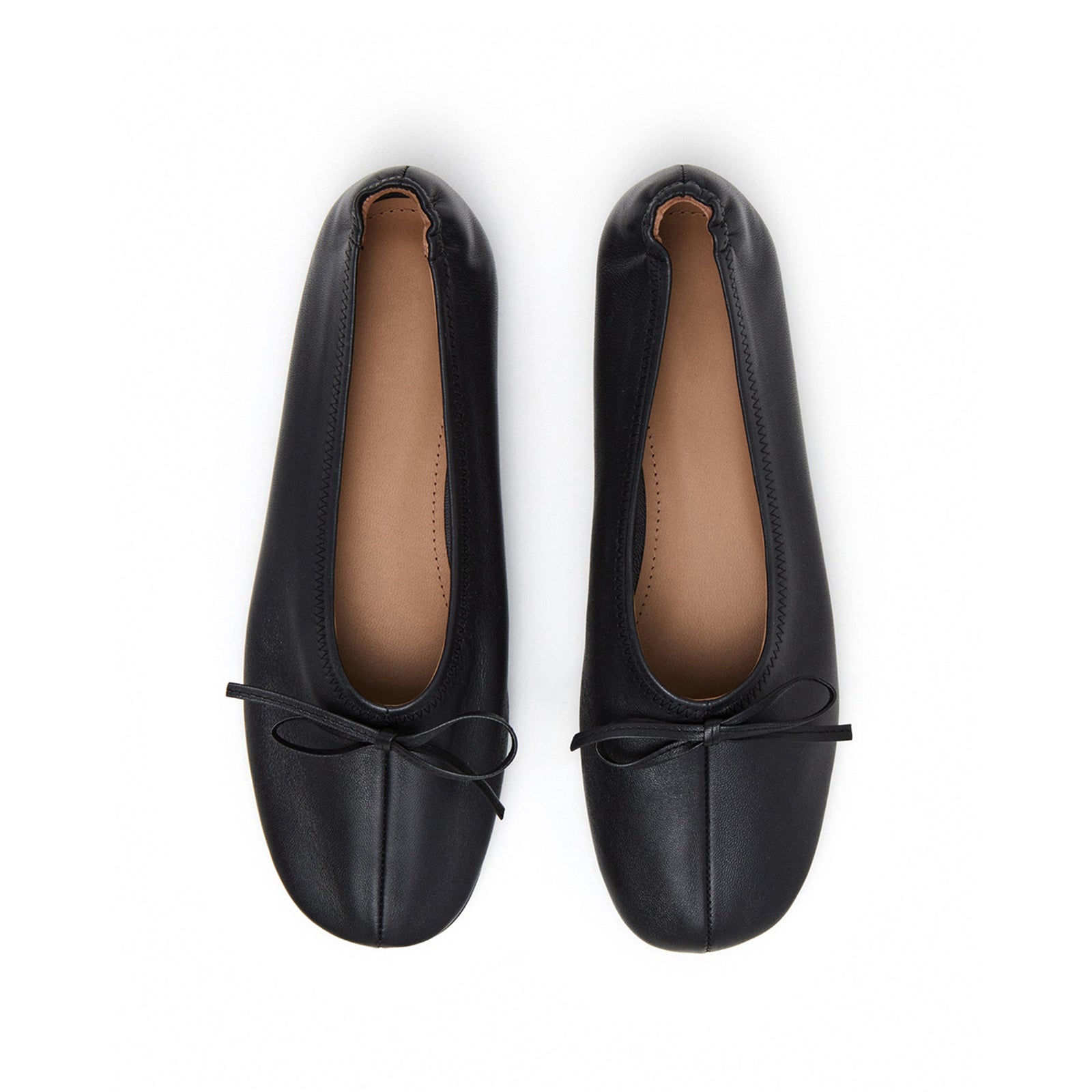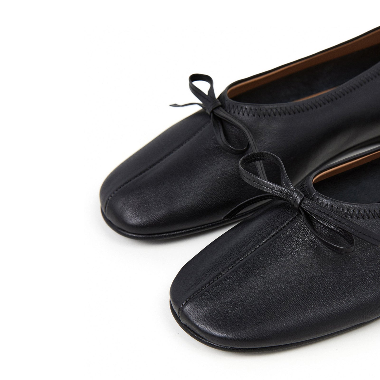 Black Square-Toe Classic Front Bow Slip-On Ballet Flats.