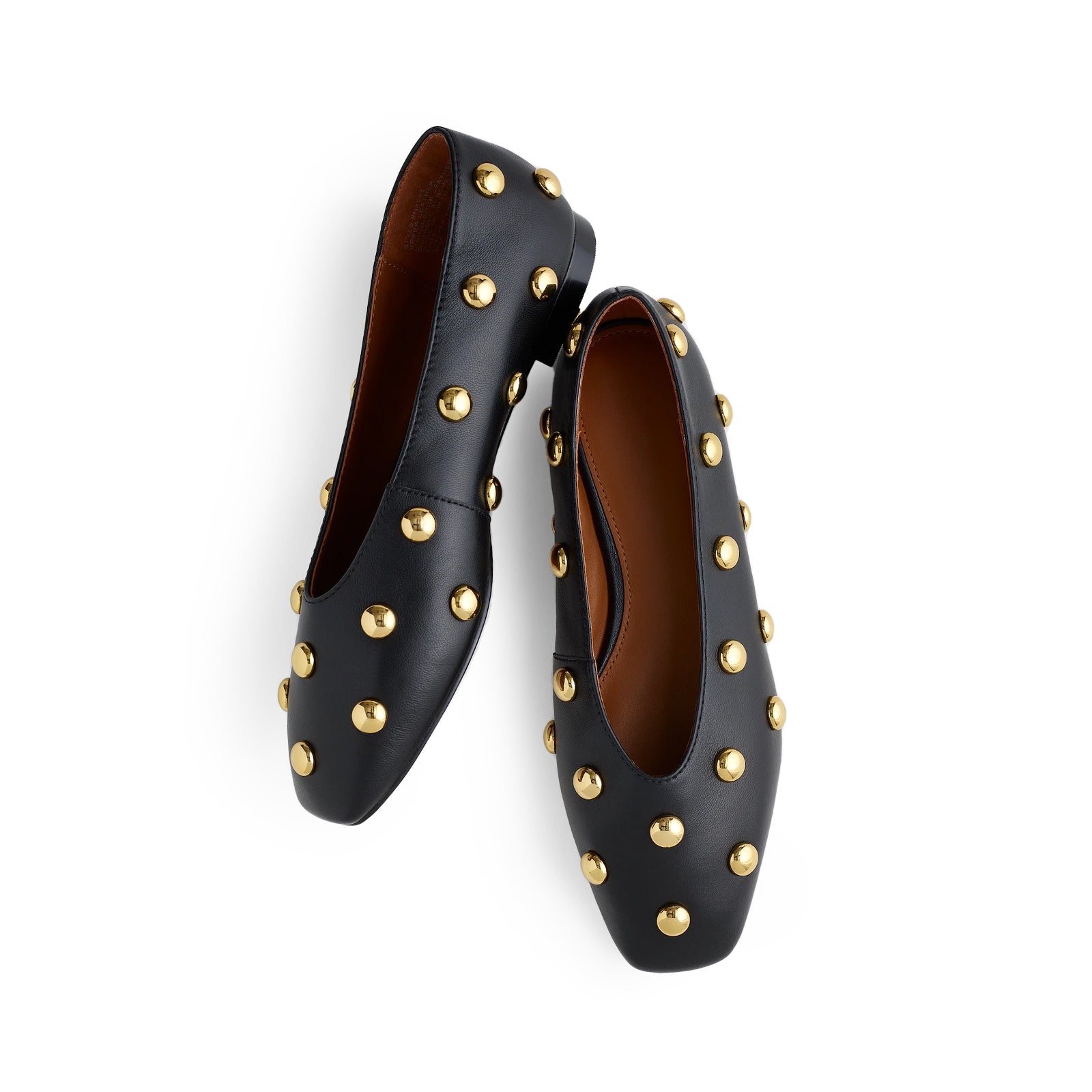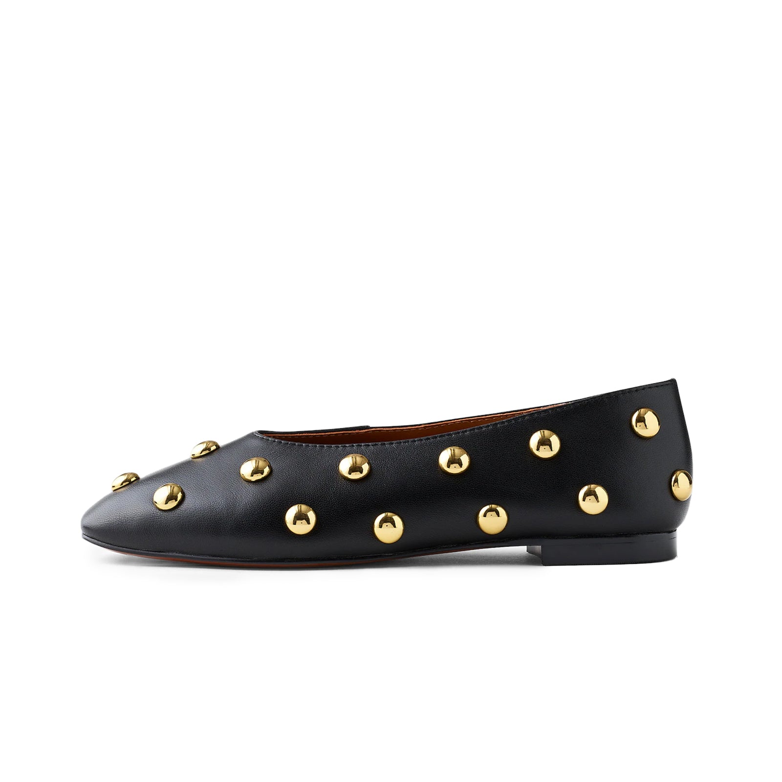 Edgy yet refined, these ballet flats elevate a classic silhouette with studded accents, bringing a bold touch of modern style to everyday wear.