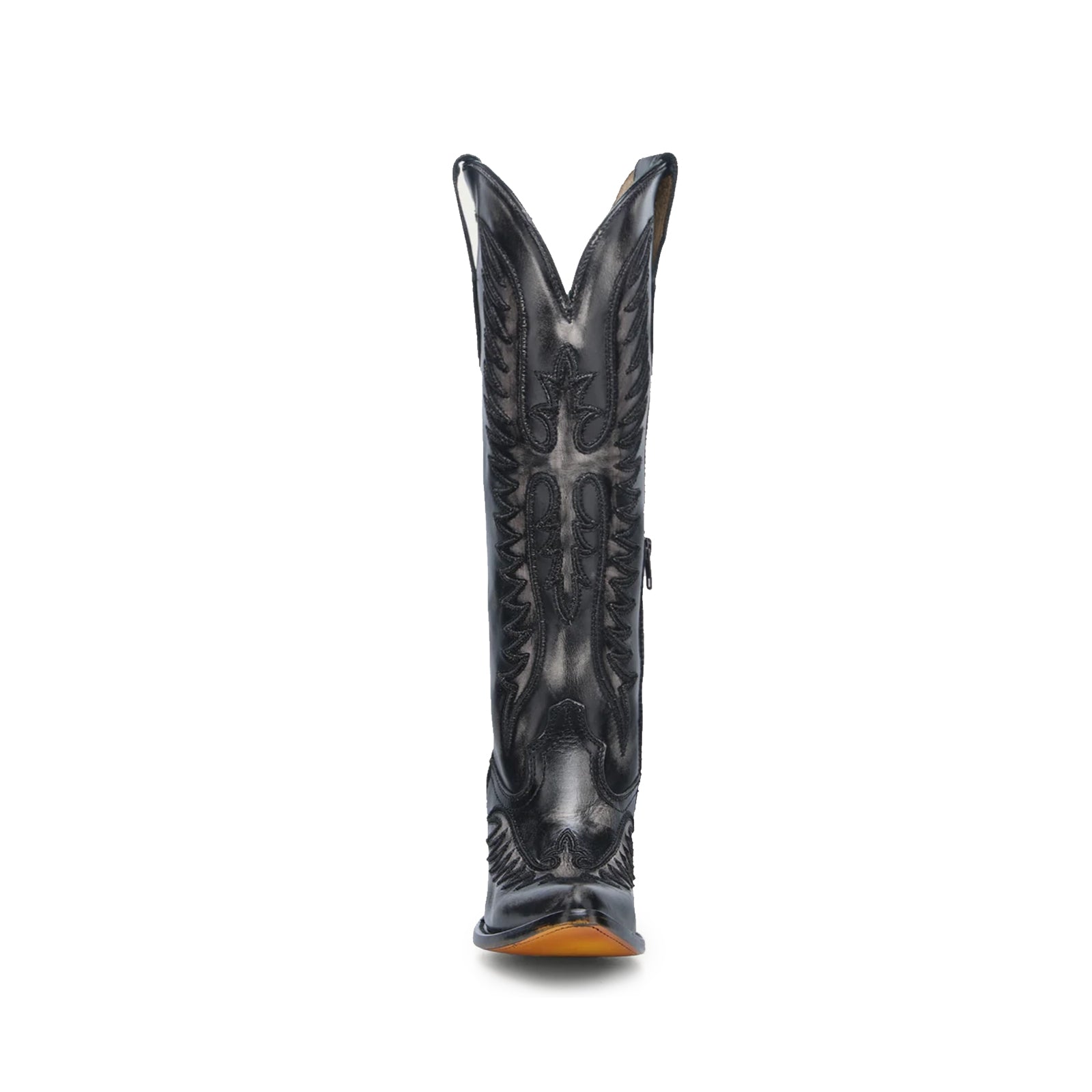 Blacked Bone Almond-Toe Embroidery Wide Calf Knee High Cowgirl Boots.