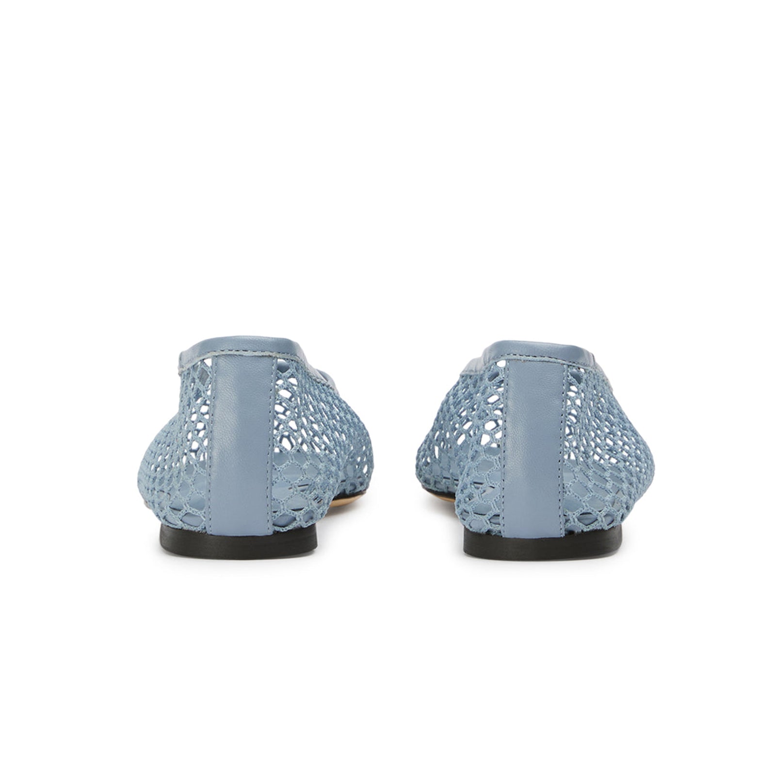 Blue Mesh Vegan Leather Square-Toe Ballet Flats.
