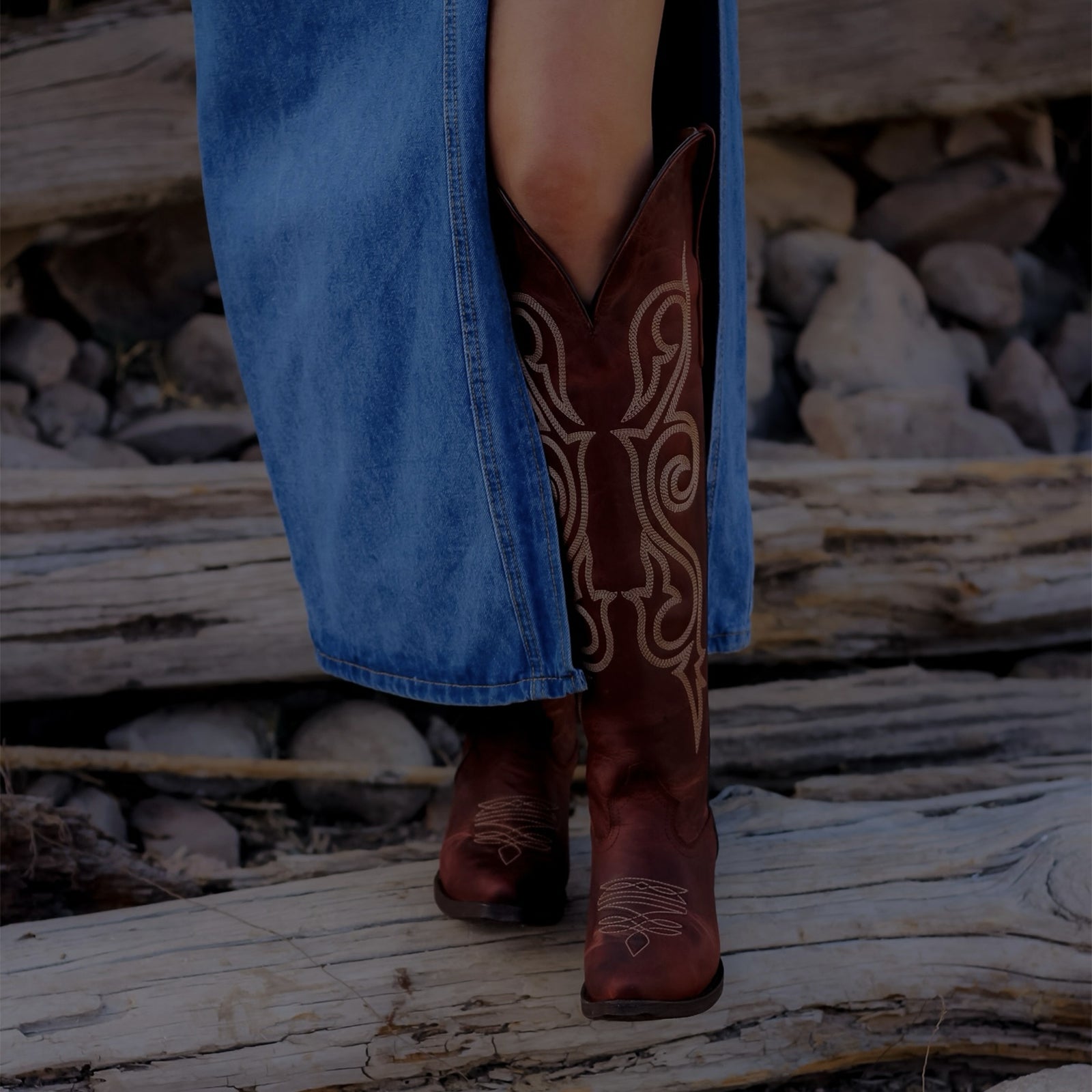 Elegant and enduring, these tall cowgirl boots showcase rich tones and traditional embroidery, delivering Western heritage with refined style.
