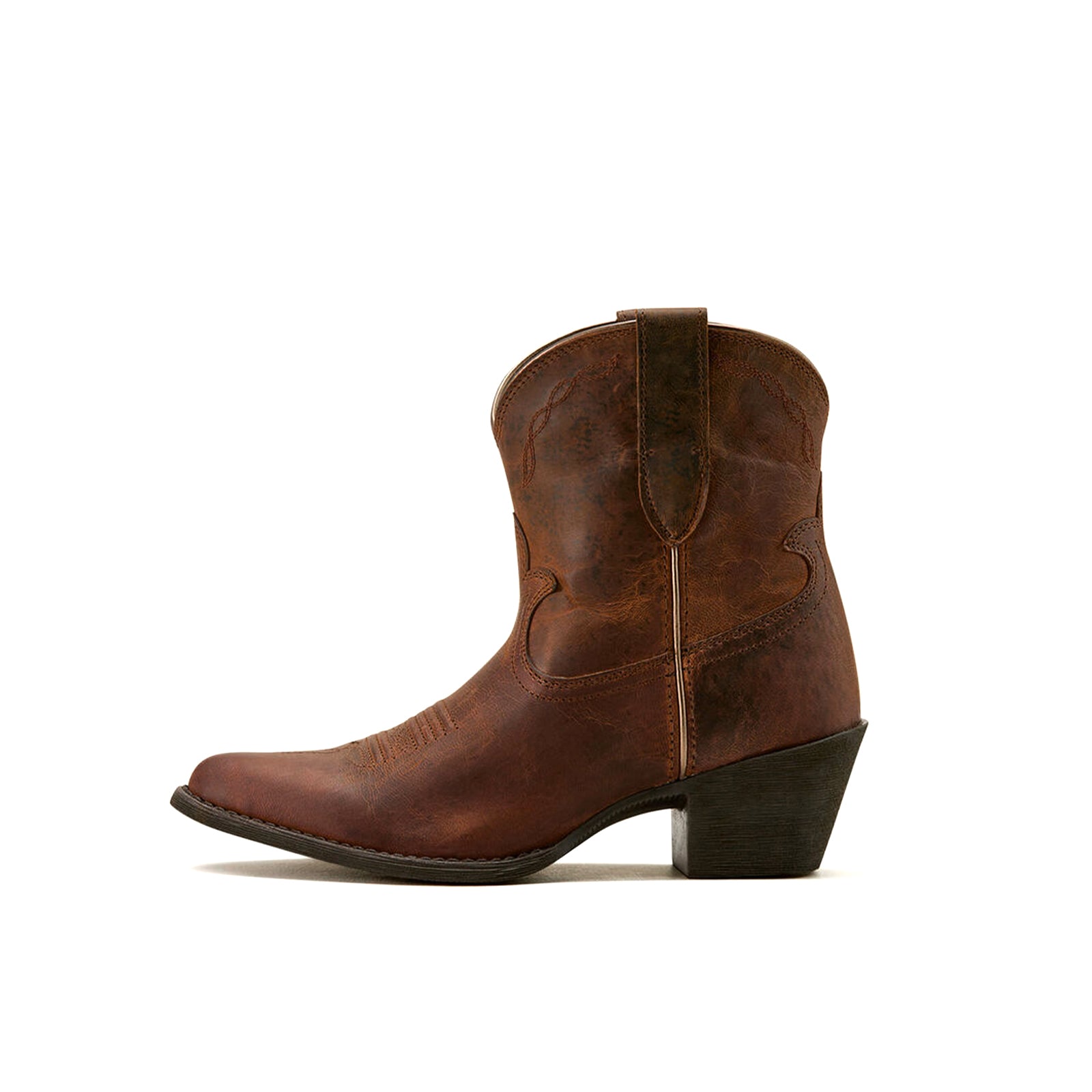 Brown Almond-Toe Stitch Ankle Cowgirl Boots.