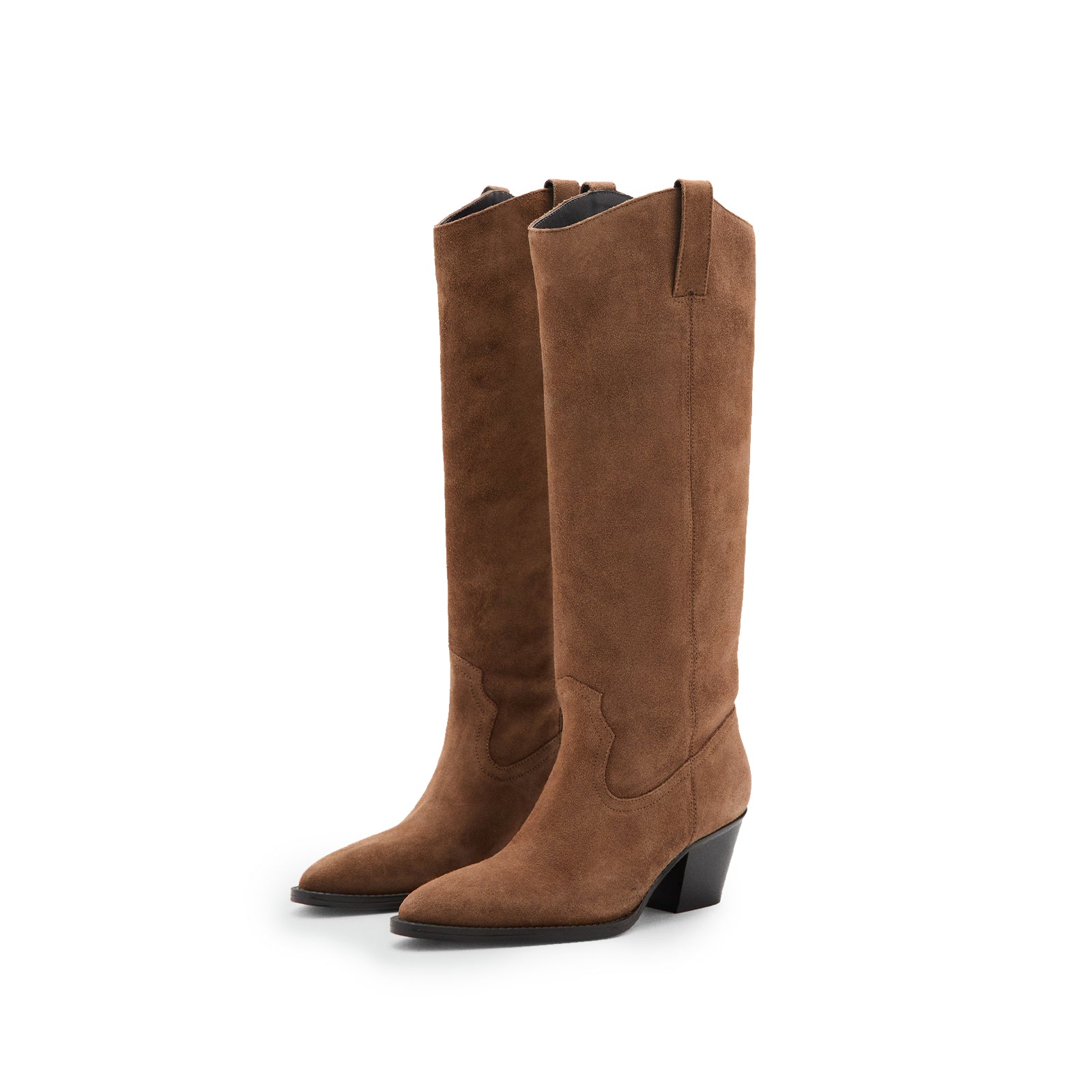 Understated yet timeless, these boots pair a sleek faux suede finish with a simple silhouette, making them a versatile staple for Western-inspired everyday wear.