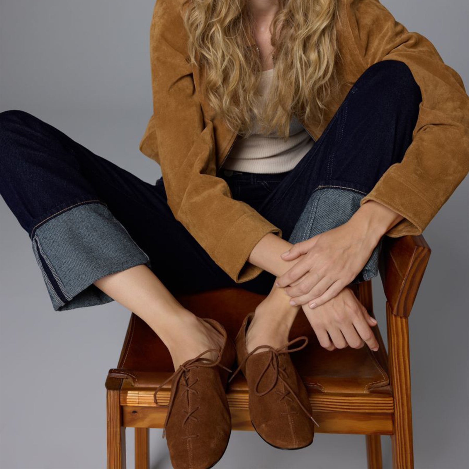 Brown Faux Suede Round-Toe Bow Loafer Flats.