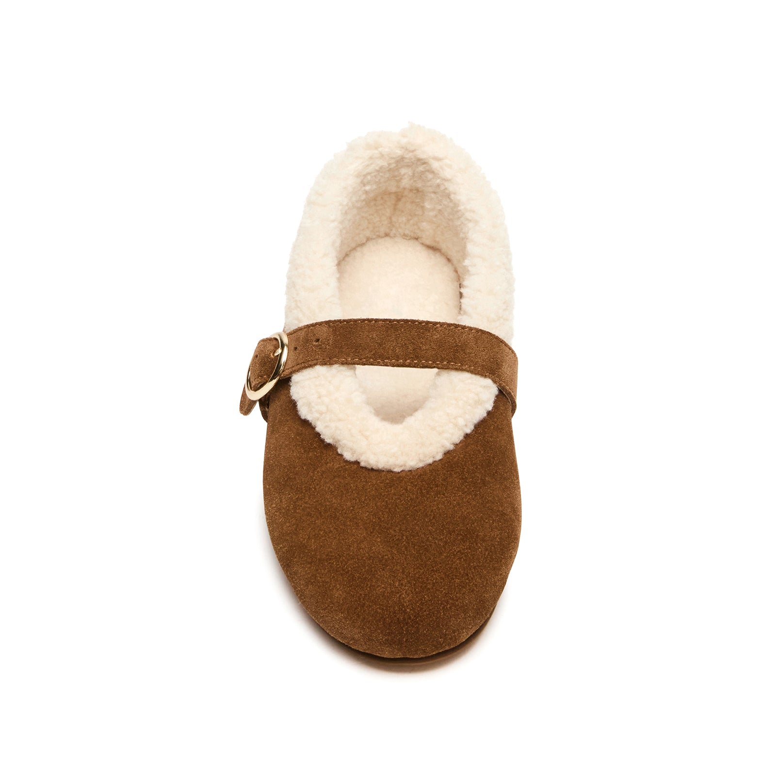 Brown Faux Suede Round-Toe Mary Jane Ballet Flats With Plush.