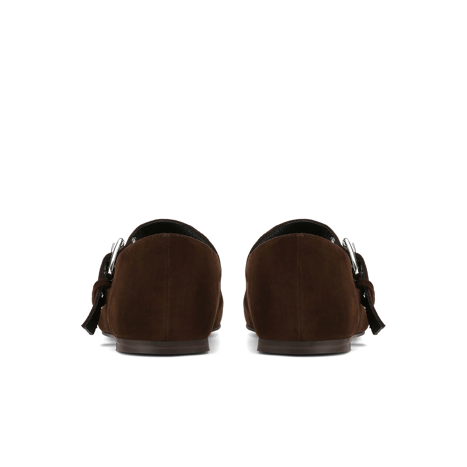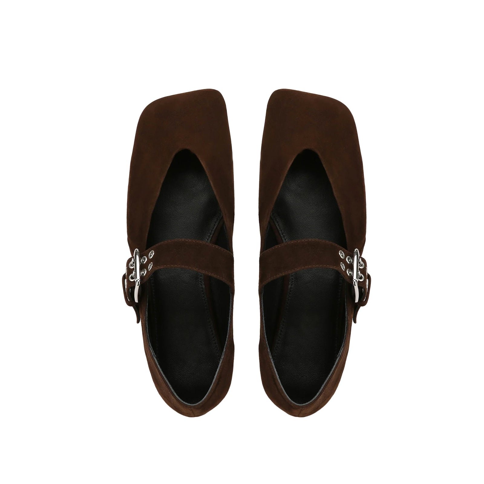 Brown Faux Suede Square-Toe Bridge Strap With Double Eyelets Flats.