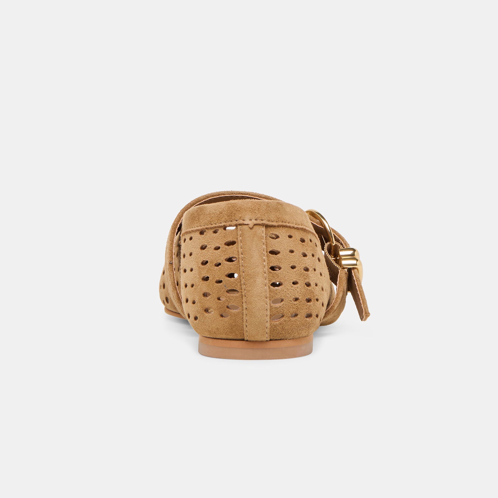 Brown Perforated Faux Suede Square-Toe Mary Janes Ballet Flats.