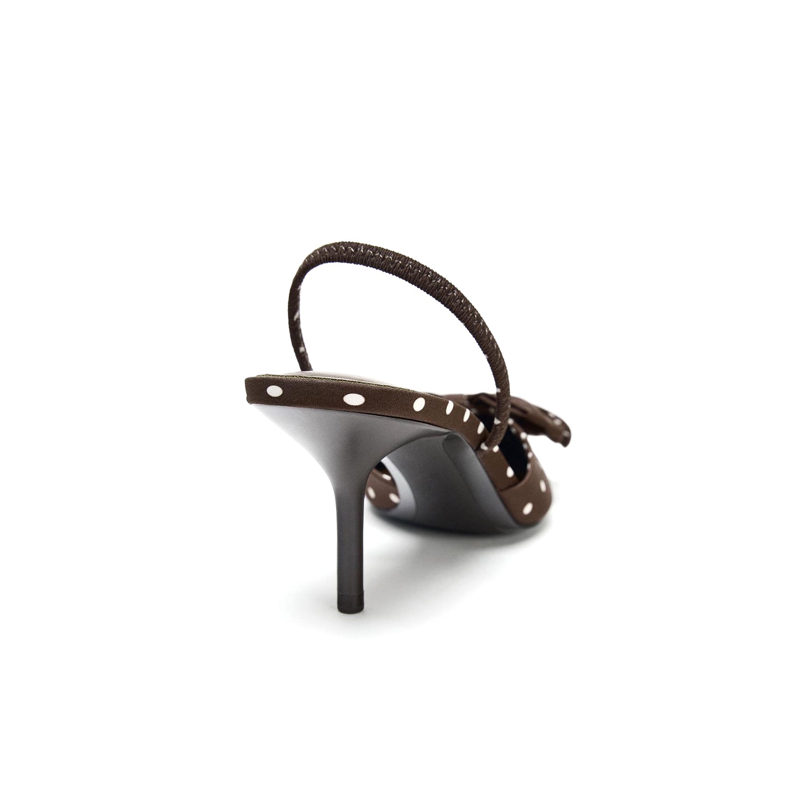 Brown Satin Polka Dot Pointed-Toe Front Big Bow Slingback Kitten Heels.