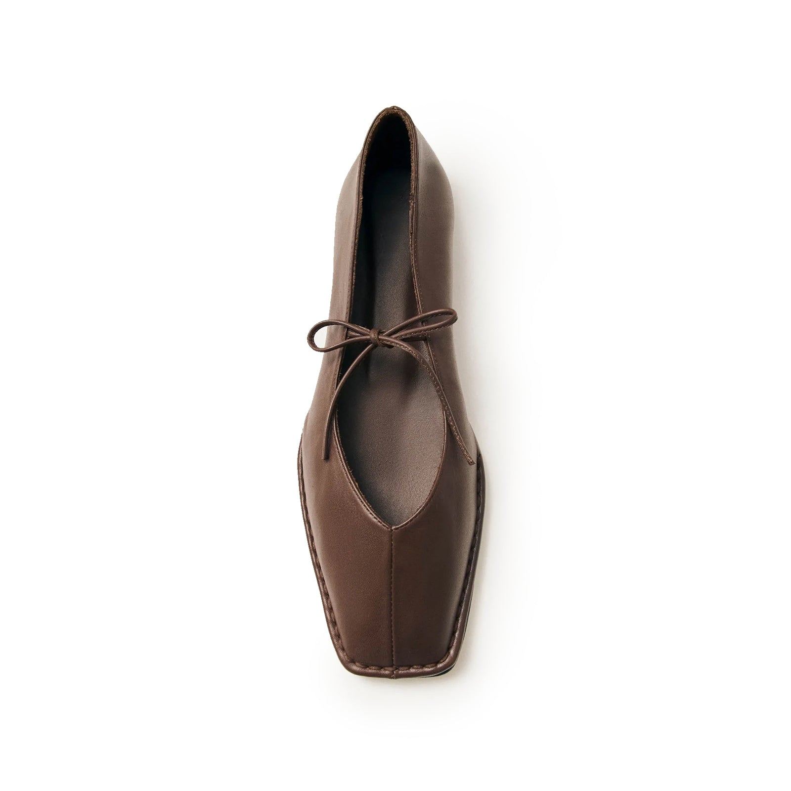 Brown Square-Toe V-Cut Vamps Bridge Self-Tie Bow Ballet Flats.