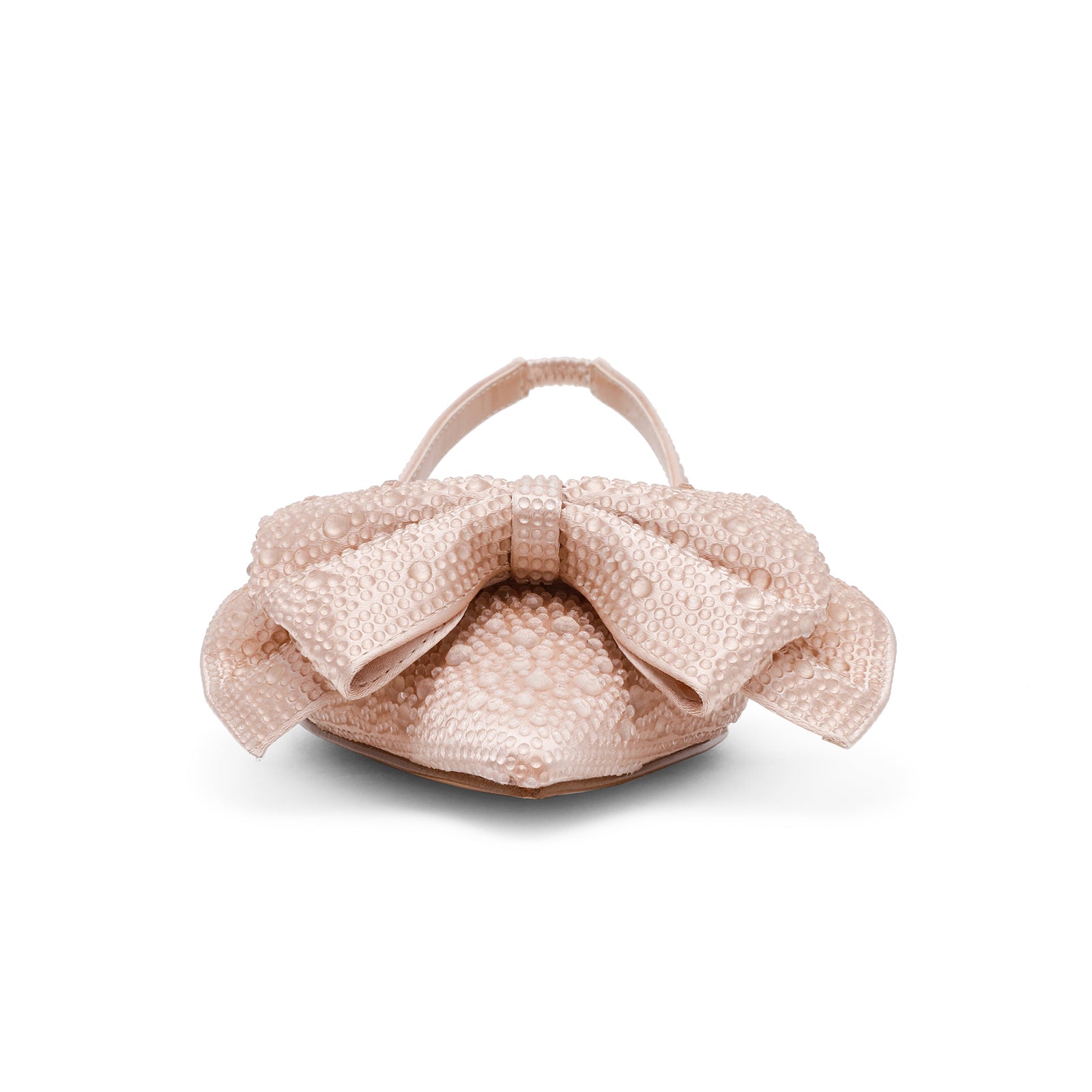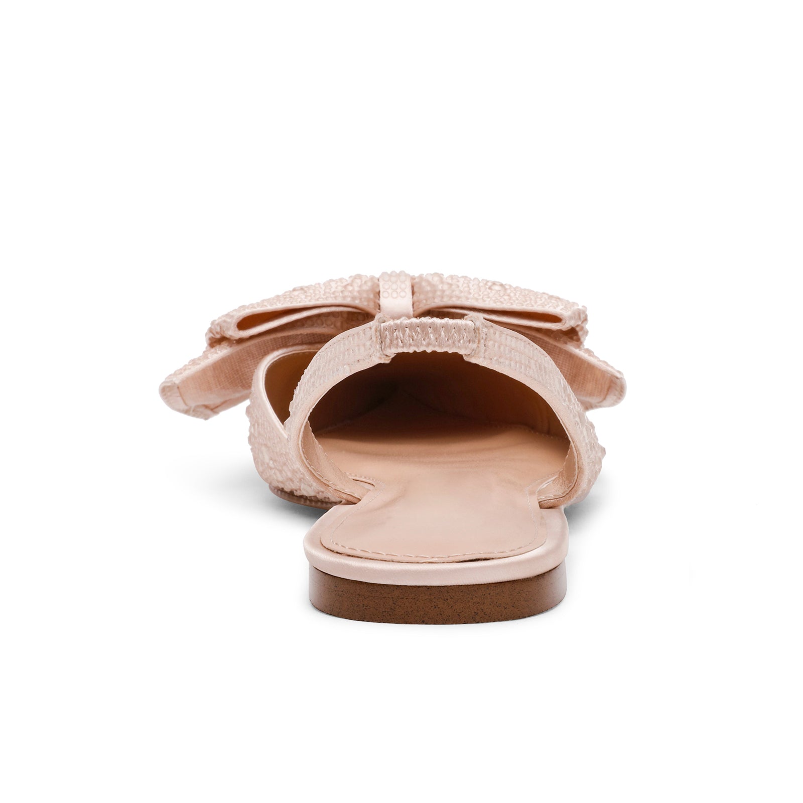 Champagne Satin Pointed-Toe Drops Front Bow Slingback Flats.