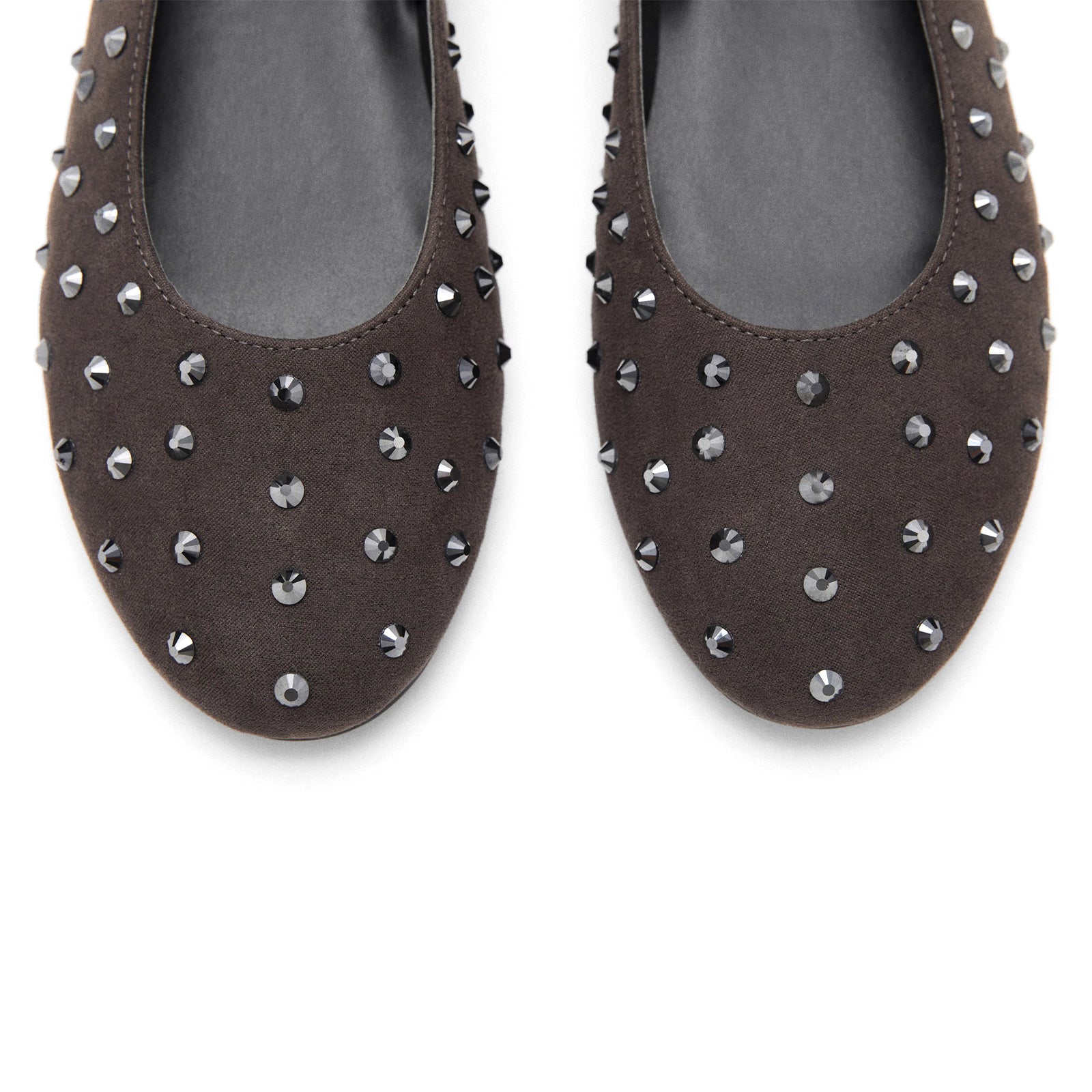 Charcoal Black Cloth Round-Toe Studded Slip-On Flats.