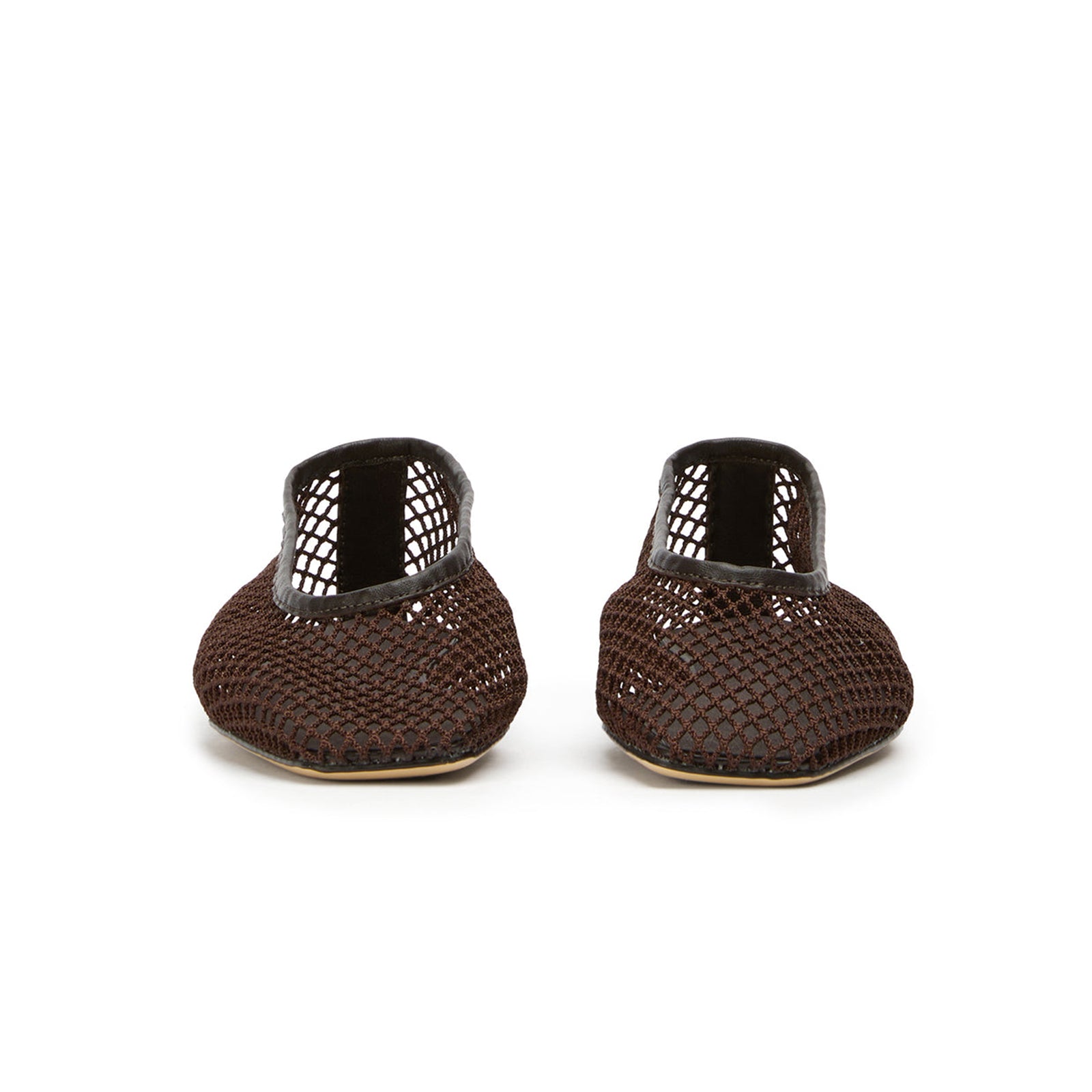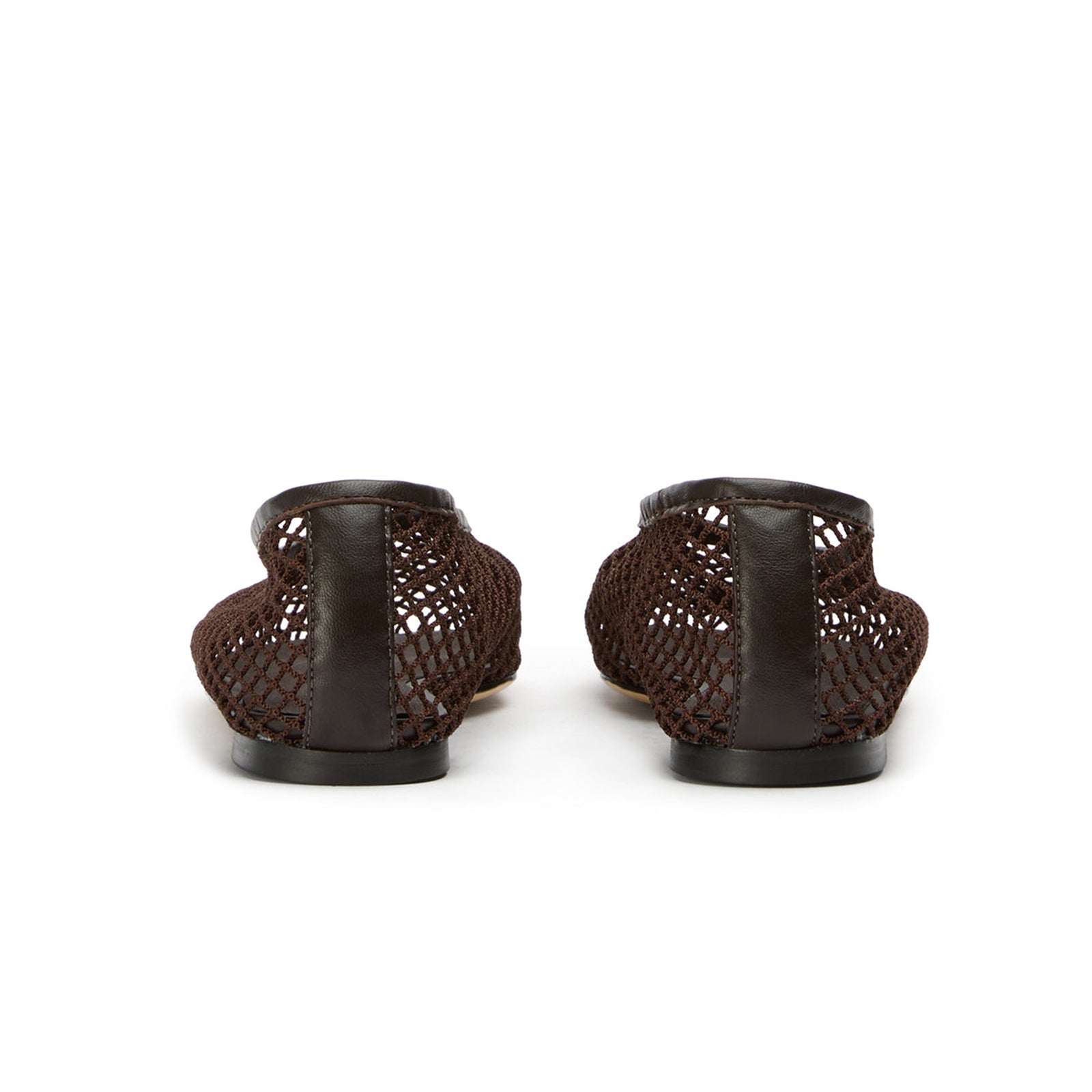 Chocolate Mesh Vegan Leather Square-Toe Ballet Flats.
