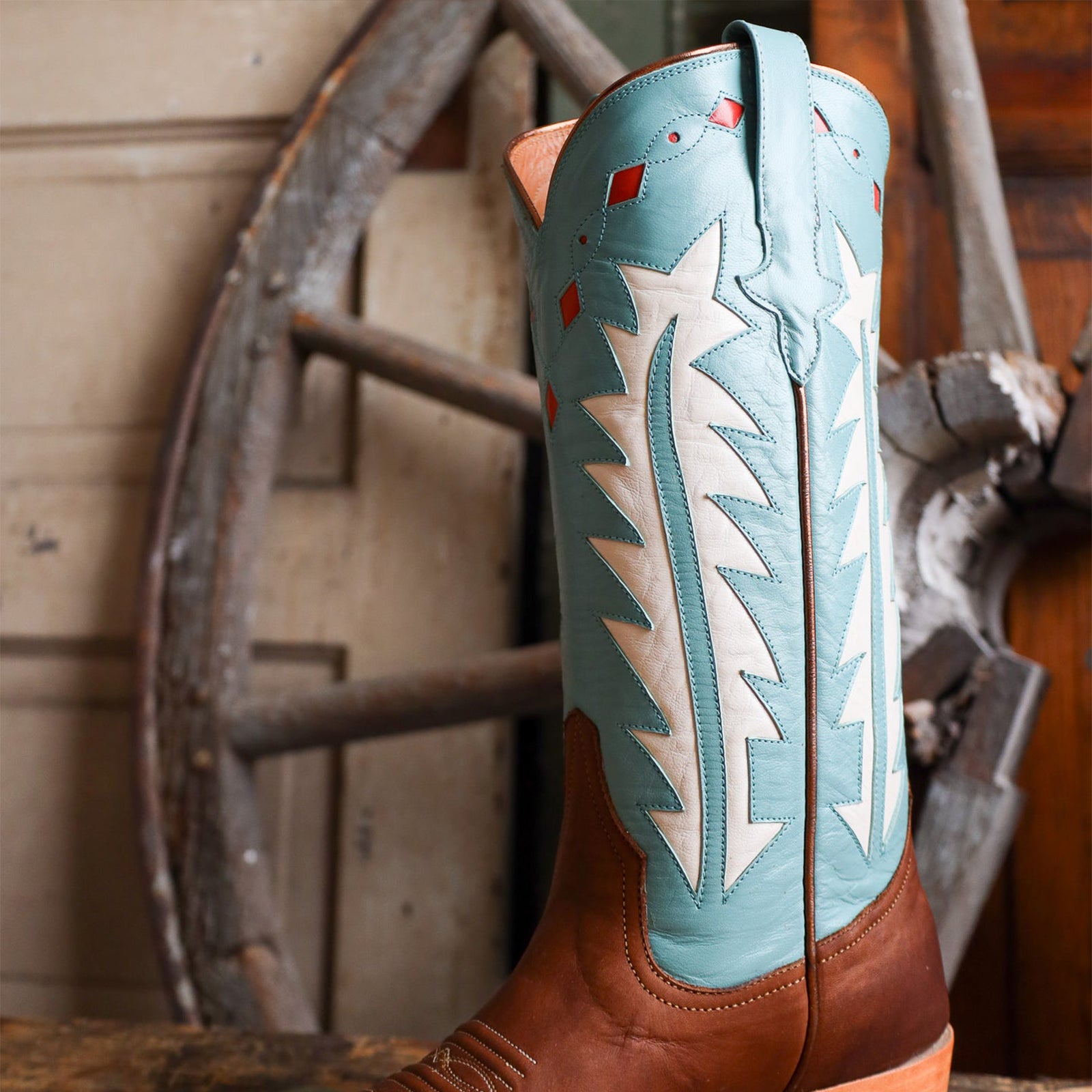 A striking cowgirl boot that balances classic Western roots with fresh, eye-catching contrast.