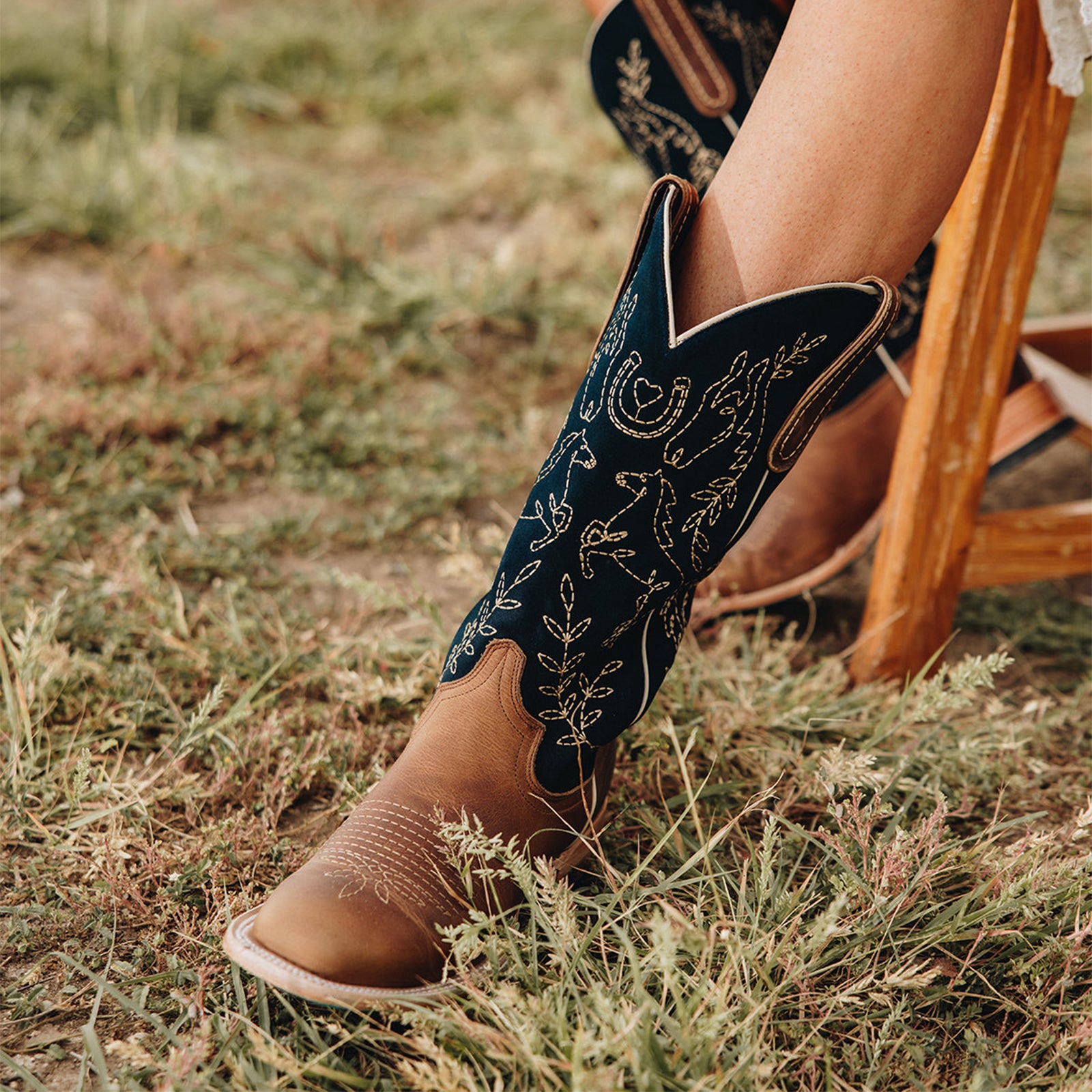 Distinctive and stylish — these cowgirl boots blend traditional embroidery with contemporary contrast.