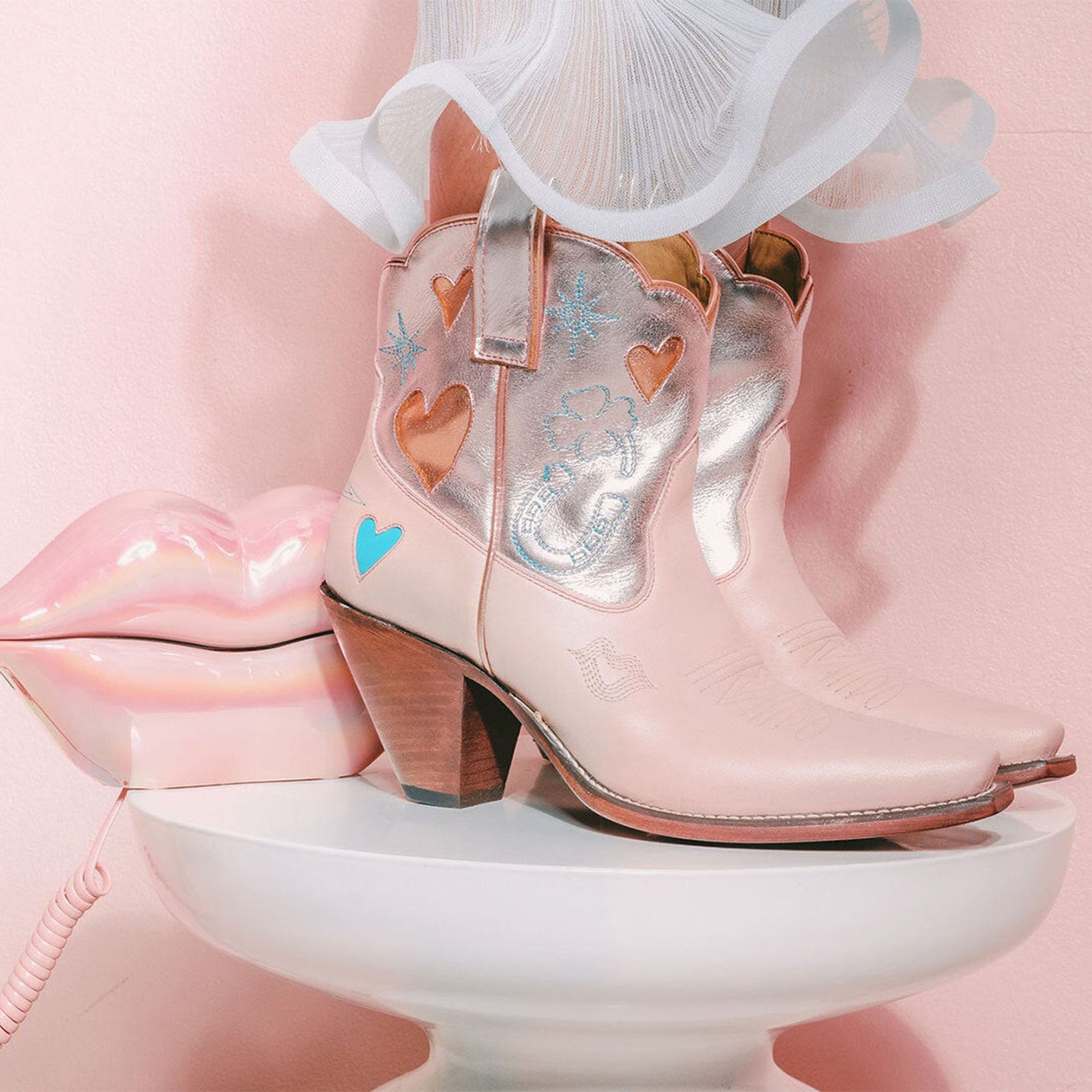 - Heart-shaped inlay and delicate embroidery add sweet Western charm.