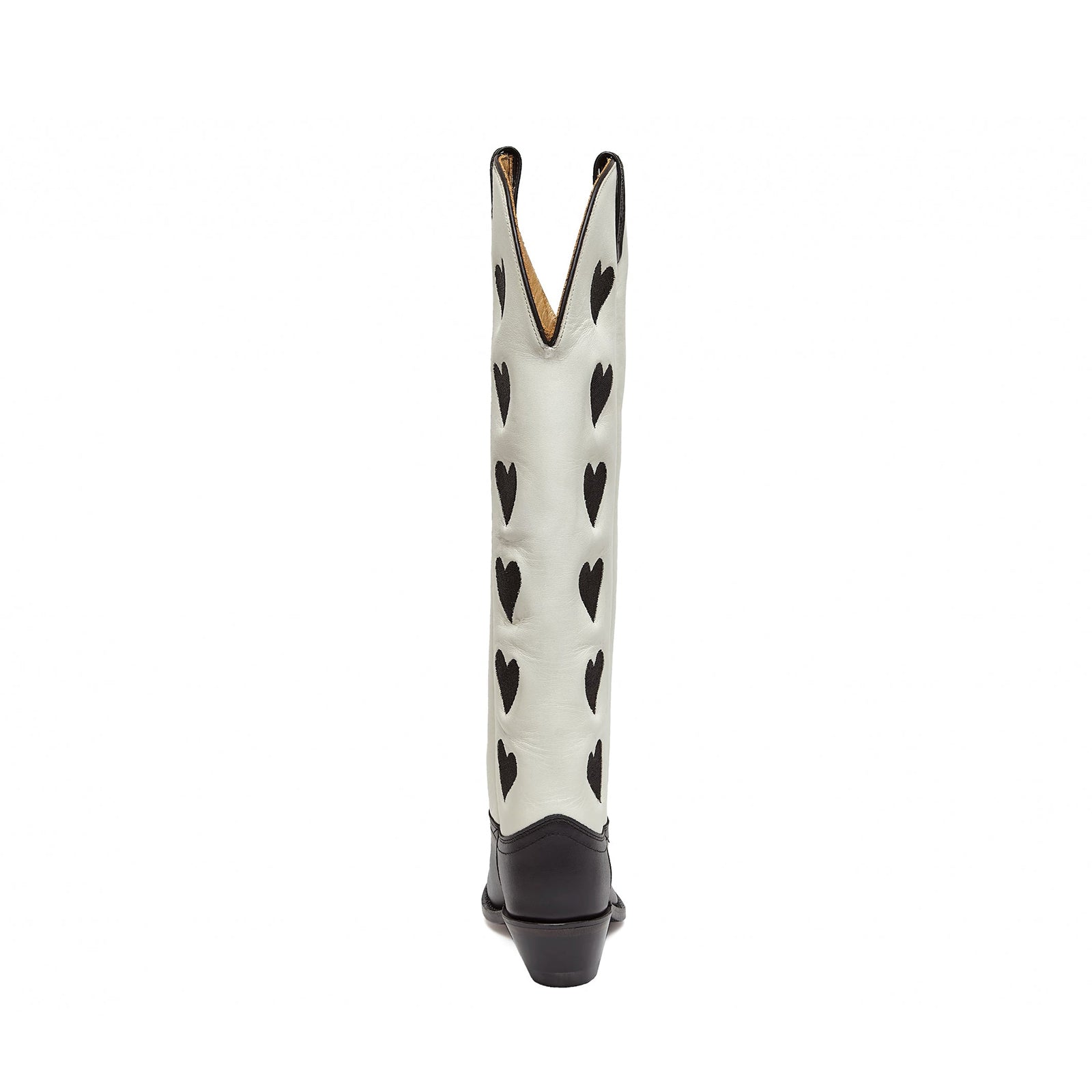 Contrast White And Black Almond-Toe Hearts Inlay Wide Calf Knee High Cowgirl Boots