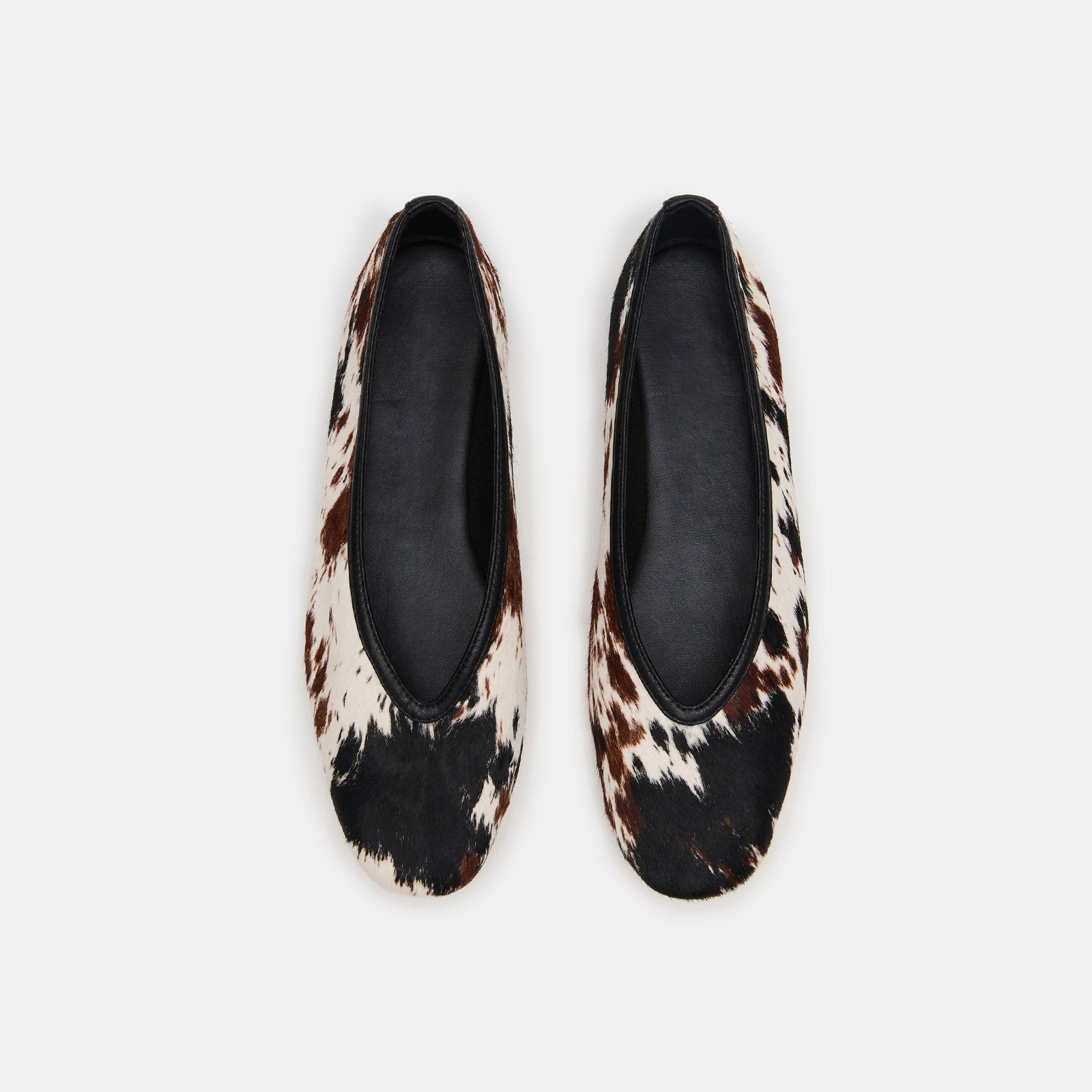 Cow Pony Hair Elegant Square-Toe Slip-On Flats.
