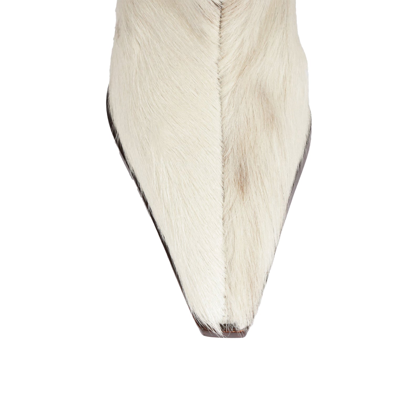 Cow Pony Hair Pointed-Toe Simple Wide Calf Knee High Stiletto Boots.