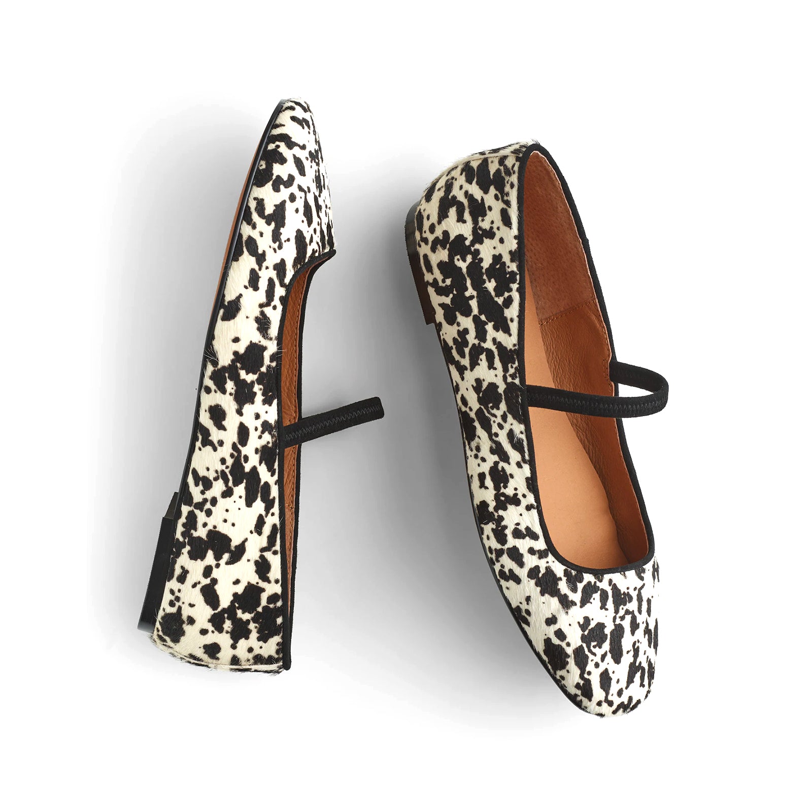 Cow Print Pony Hair Square-Toe Bridge Strap Classic Ballet Flats.