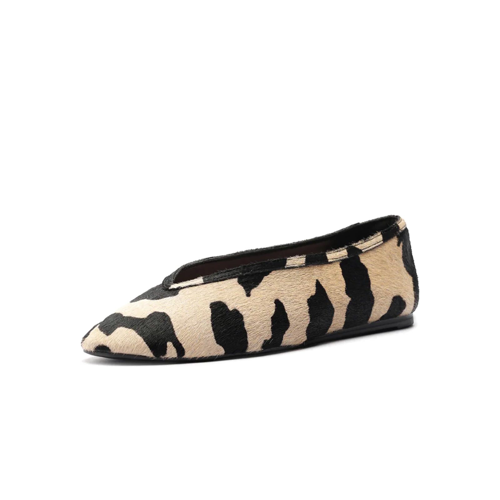 Cow Print Pony Hair Square-Toe Simple Ballet Flats.