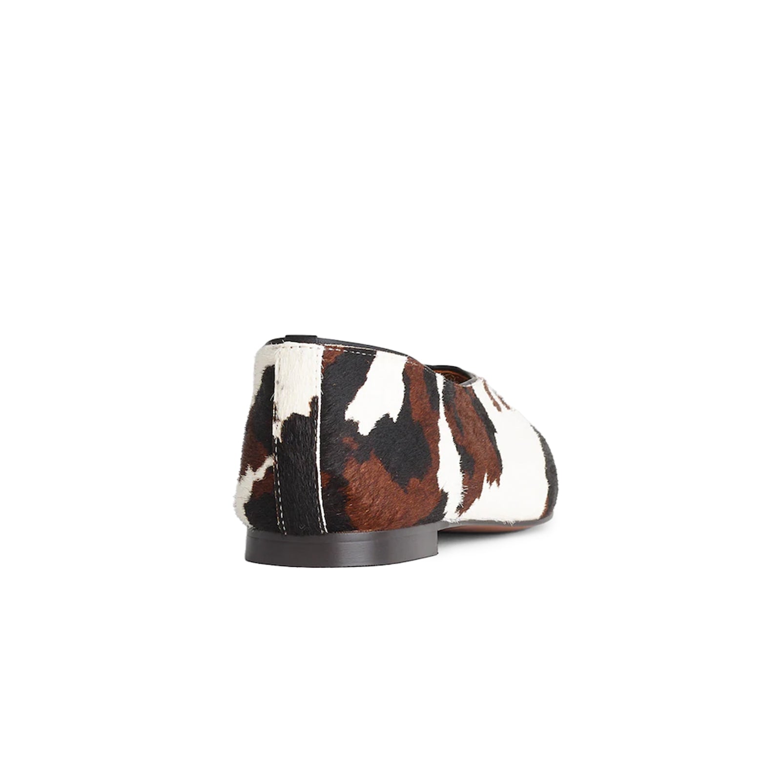 Cow Print Pony Hair Vegan Leather Square-Toe Ballet Flats