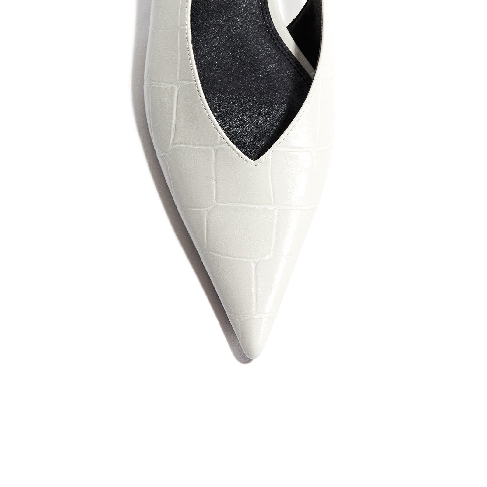 Cream Stone Print Pointed-Toe Slingback Flats.