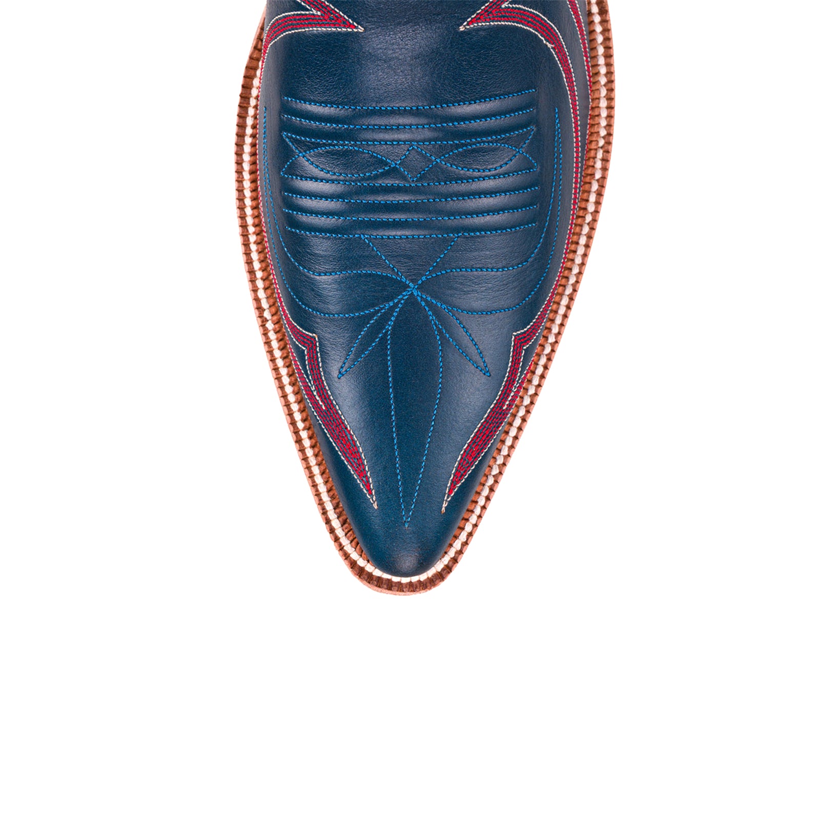 Dark Blue Snip-Toe Embroidery Mid Calf Cowgirl Boots.
