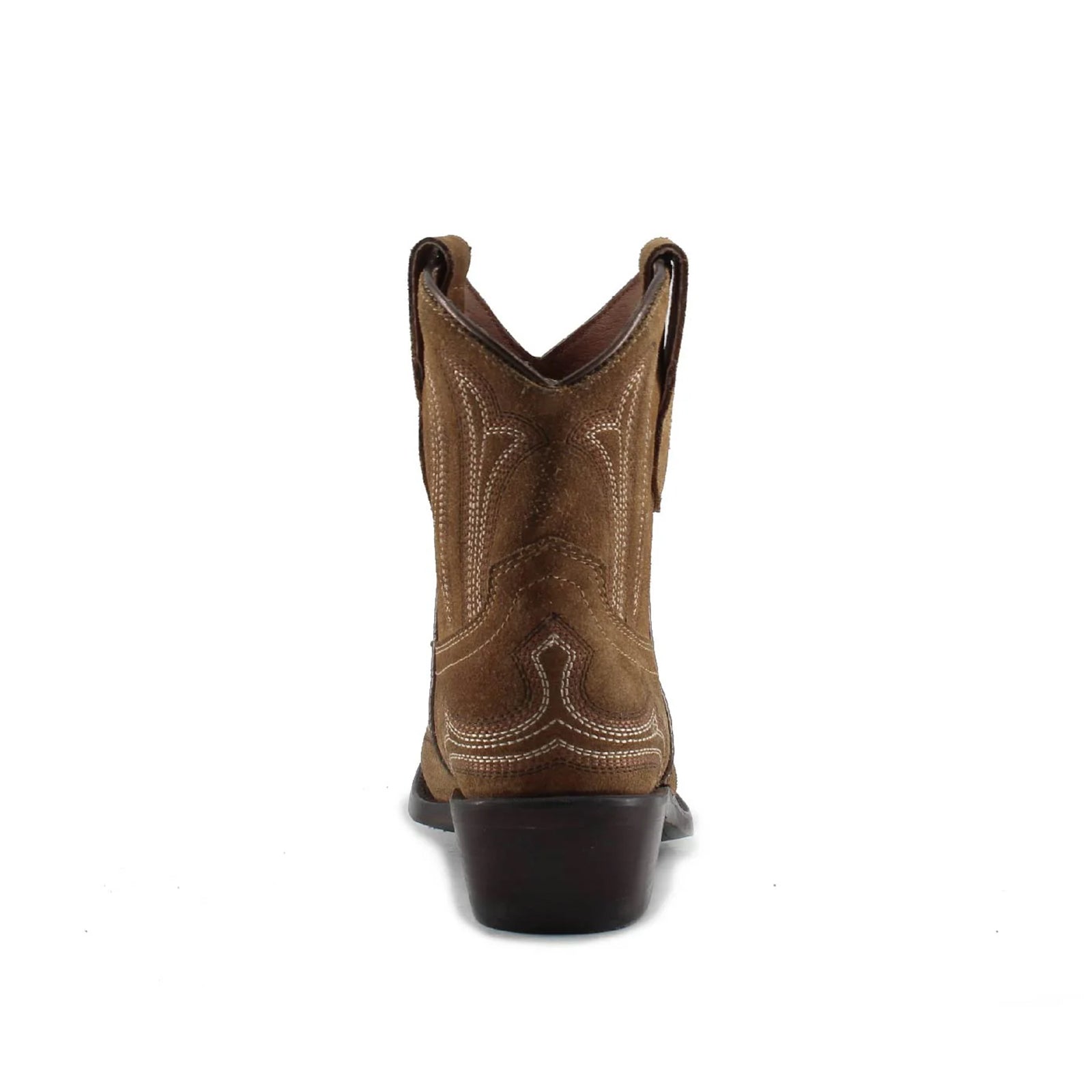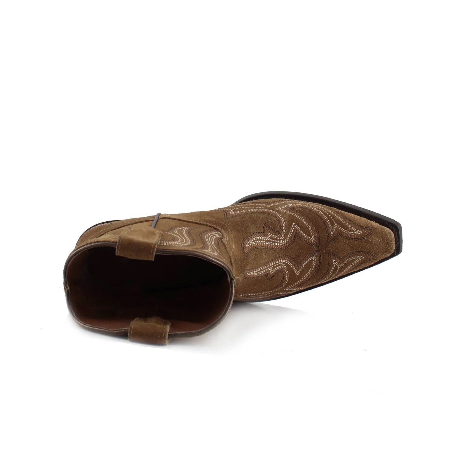 Dark Gold Faux Suede Snip-Toe Embroidery Ankle Cowgirl Boots