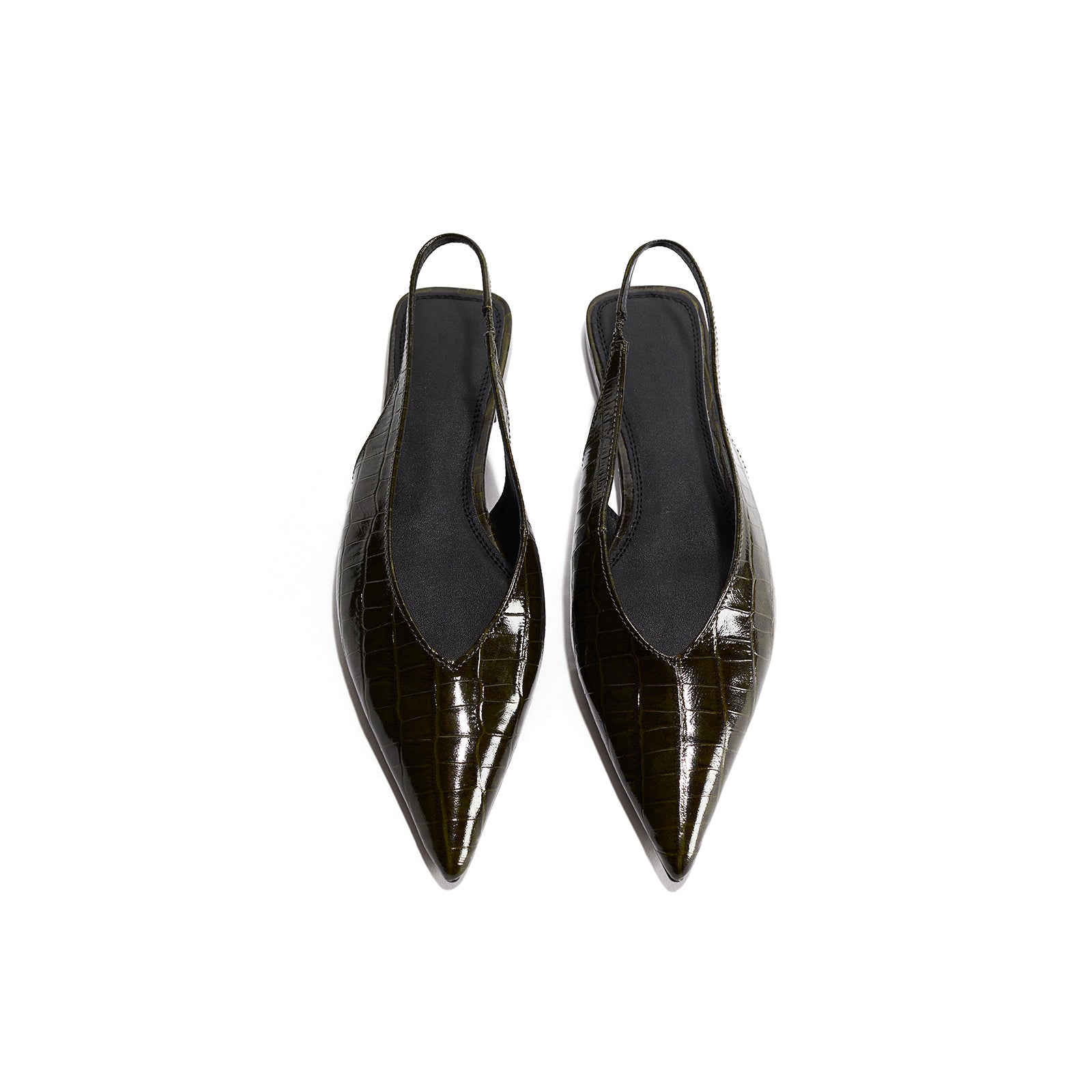 Dark Khaki Stone Print Pointed-Toe Slingback Flats.