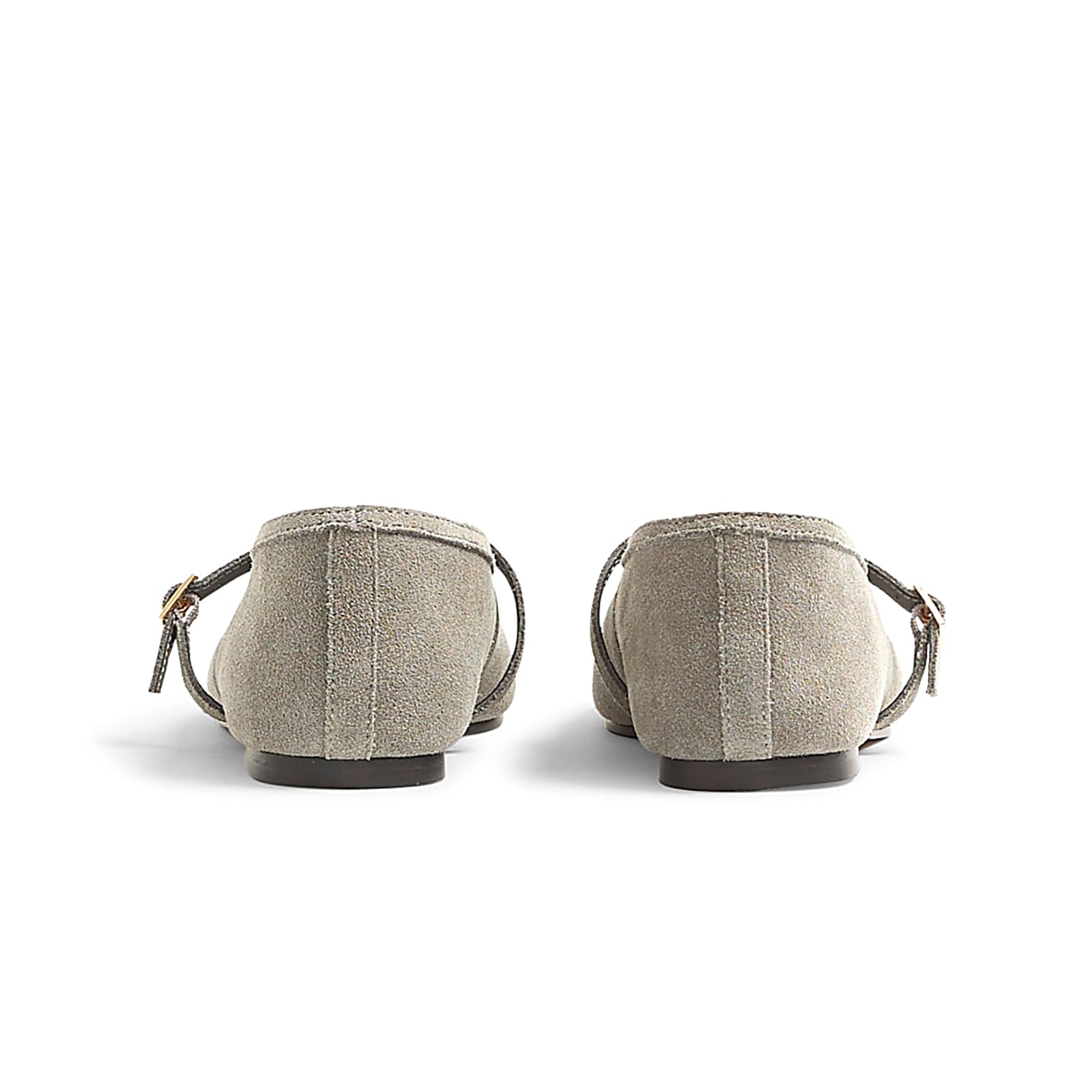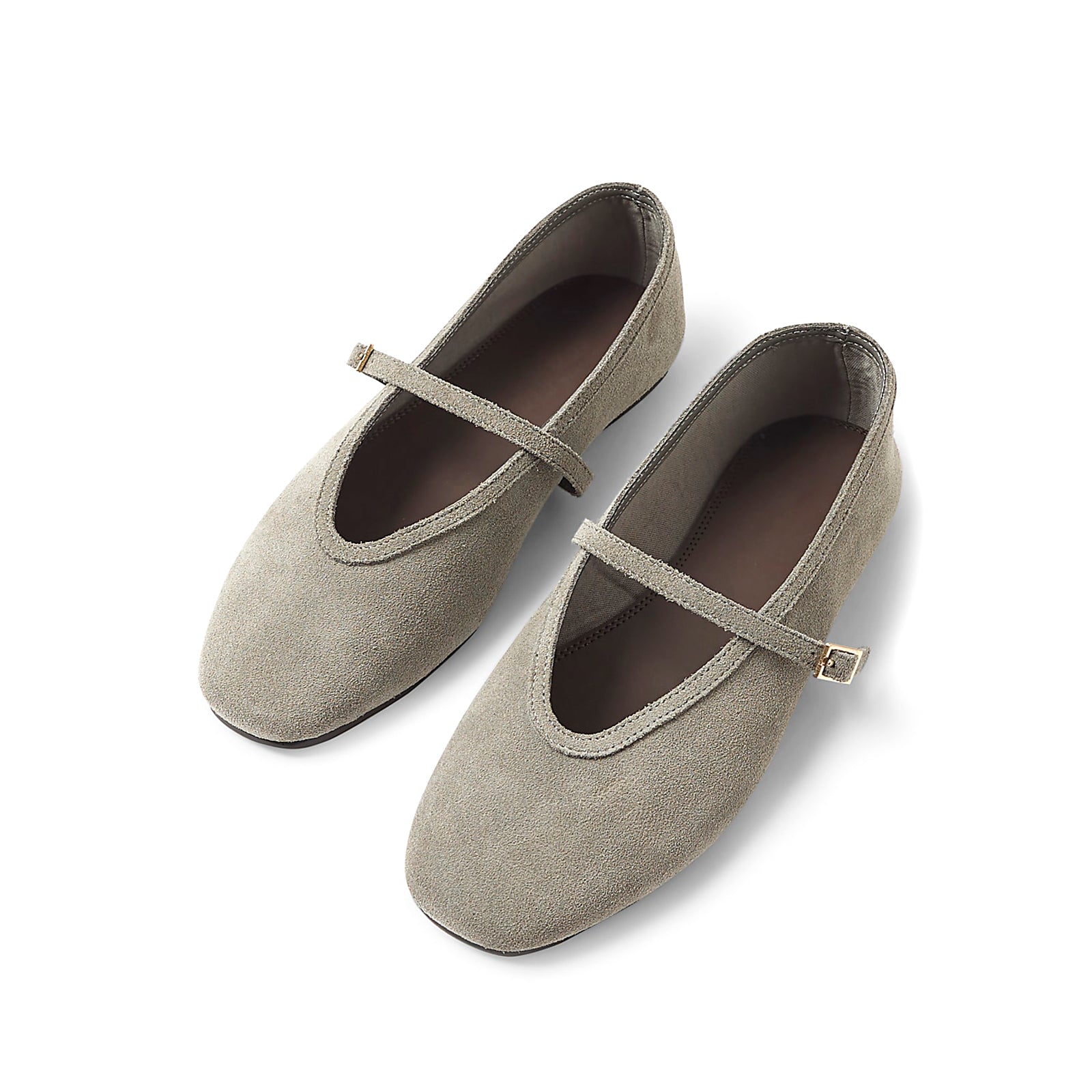 Gray Faux Suede Square-Toe Mary Jane Ballet Flats.
