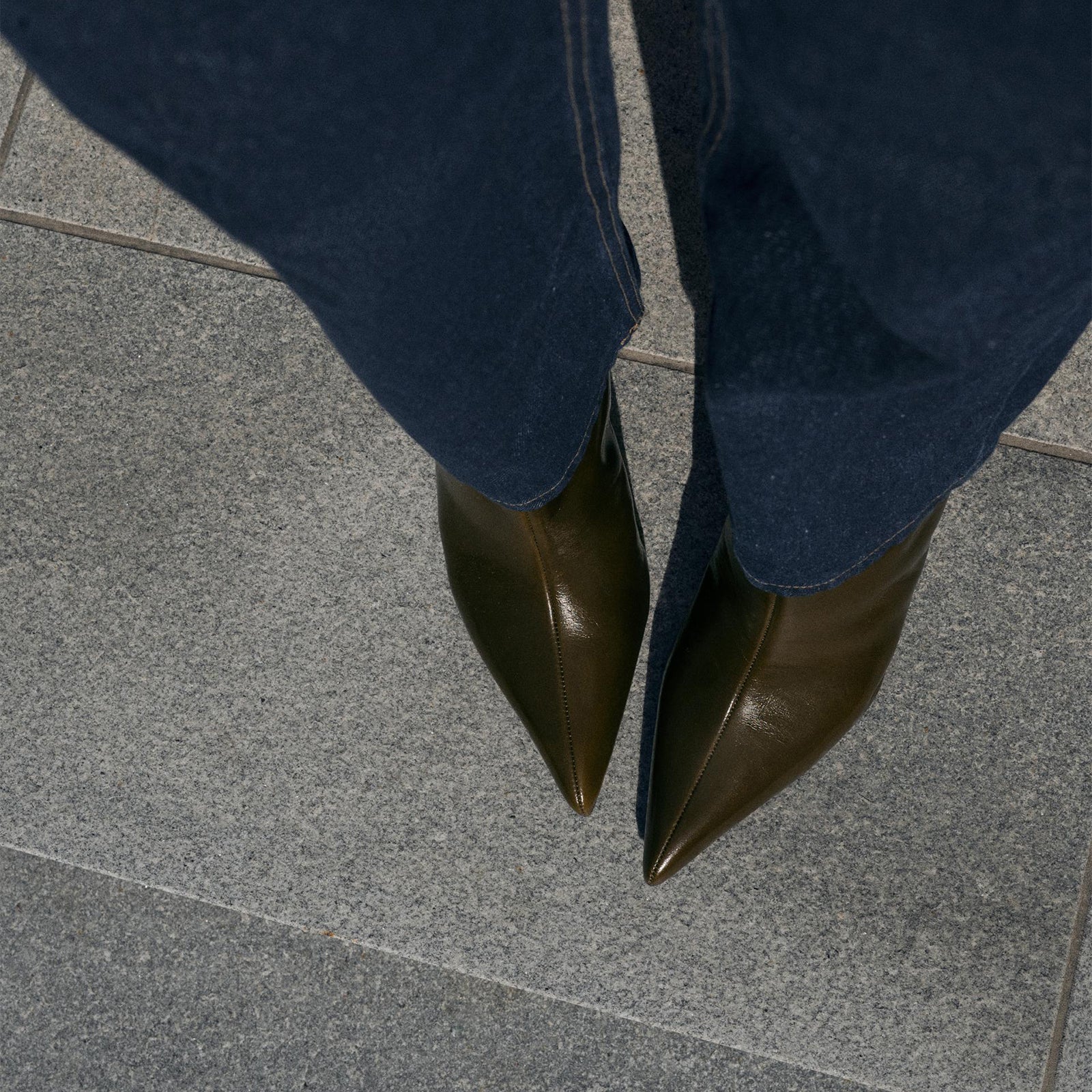 Green Pointed-Toe Simple Ankle Stiletto Boots