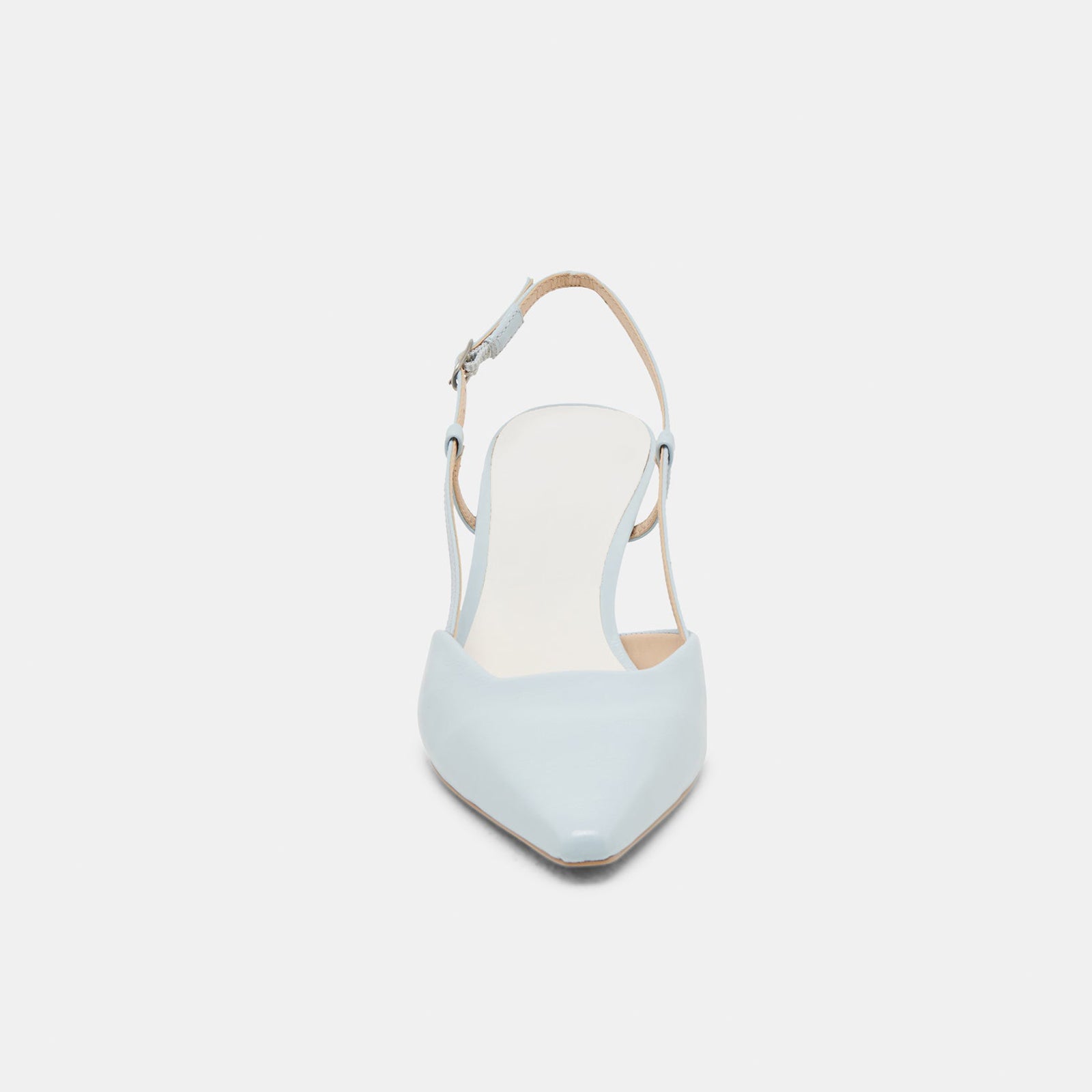 Ice Blue Pointed-Toe Classic Slip-On Slingback Kitten Heels.